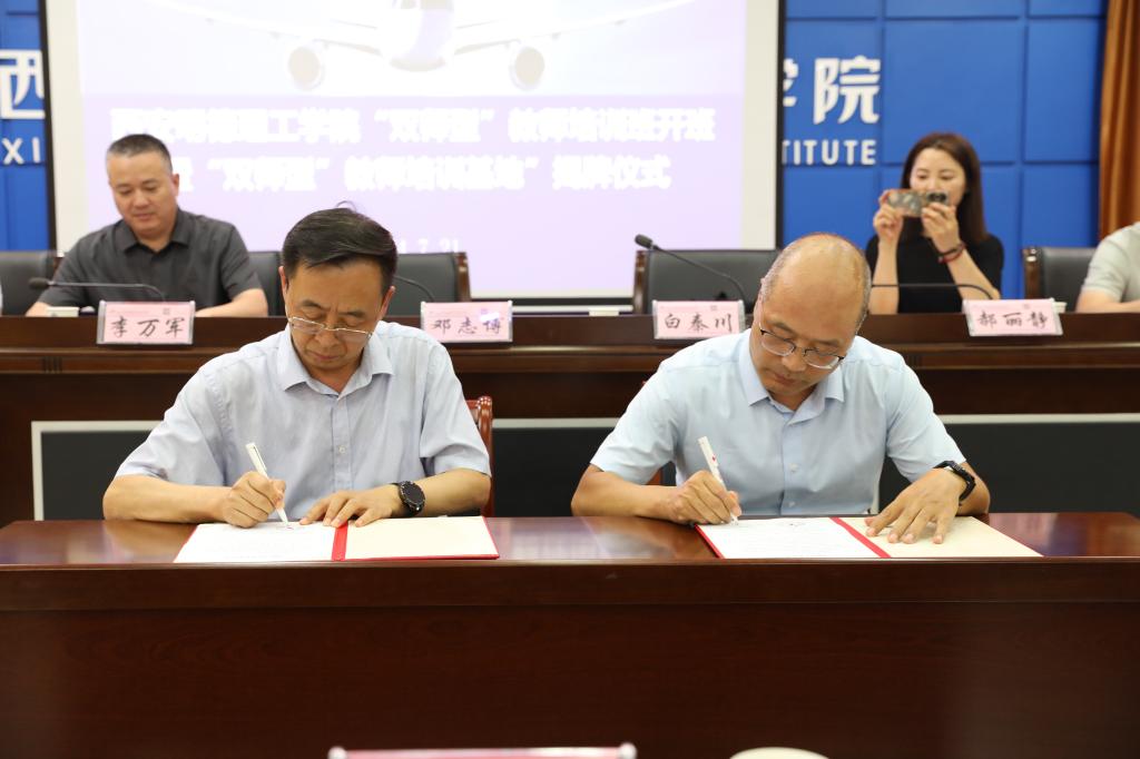 beat365vip官网登录入口副校长白秦川与西安航空职业技术学院副校长邓志博共同签署了合作框架协议,标志着两校在“双师型”教师培养领域的合作正式拉开帷幕。两位副校长共同为beat365vip官网登录入口“双师型”教师培训基地揭牌。“双师型”教师培训基地的成立,将为beat365vip官网登录入口的教师搭建一个集理论学习、实践操作、科研创新于一体的综合性培训平台,有力推动学校“双师型”教师队伍建设和发展。