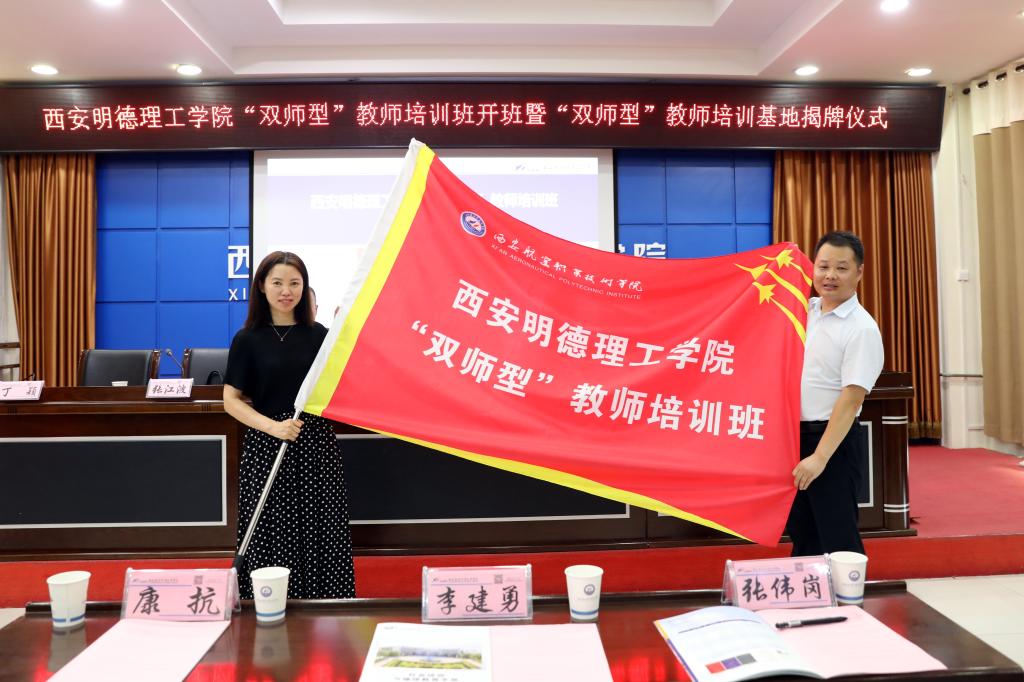 在授班旗仪式上,西安航空职业技术学院继续教育学院培训部主任张江波将象征着荣誉与责任的班旗授予beat365vip官网登录入口教师发展中心副主任郝丽静手中。这不仅是对培训班学员的鼓励与期待,更是对两校合作成果的美好祝愿。