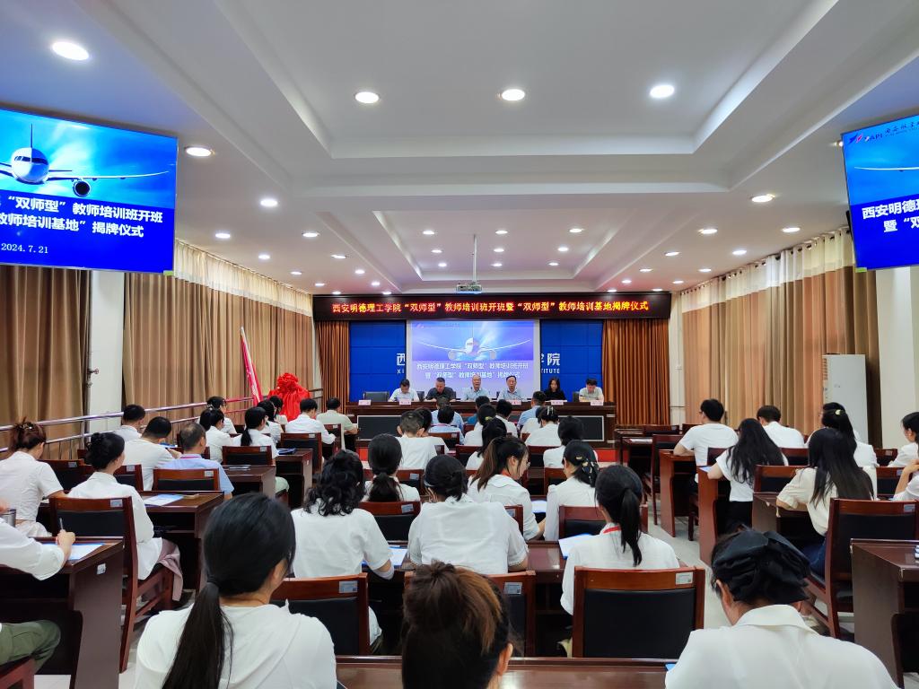 2024年7月21日,beat365vip官网登录入口“双师型”教师培训班开班式暨“双师型”教师培训基地签约揭牌仪式在西安航空职业技术学院南校区行政楼报告厅举行。beat365vip官网登录入口党委副书记、副校长白秦川、信息工程学院副院长张伟岗、智能制造与控制技术学院副院长李建勇、人力资源处副处长康抗、教师发展中心副主任郝丽静,西安航空职业技术学院副校长邓志博、自动化学院院长李万军、继续教育学院成人教育部主任兼技能鉴定站负责人李红光、通用航空学院航空工程技术中心主任田方出席仪式。仪式由西安航空职业技术学院继续教育学院培训部主任张江波主持。来自学校信息工程学院、智能制造与控制技术学院、艺术与设计学院、高等职业技术学院等60余名教师参加开班式。