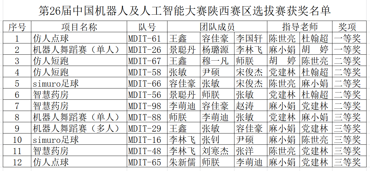 第26 届中国机器人及人工智能大赛陕西赛区选拔赛由西北工业大学承办,经过校赛选拔,共有来自省内31所高校的607支参赛队伍参加省级选拔赛。在比赛中beat365全体参赛队员同心协力、奋勇拼搏,不畏强手,取得了优异的成绩,其中一等奖和二等奖的项目将参加8月份进行的全国总决赛,陈世亮老师、胡婷老师和麻小娟老师荣获优秀指导教师奖。