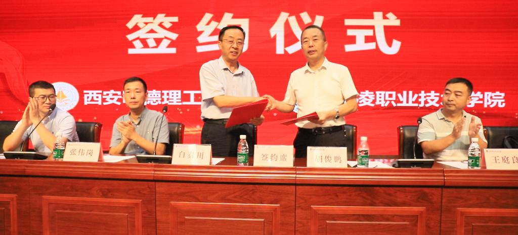 随后,在两校教师的共同见证下,beat365vip官网登录入口党委副书记、副校长白秦川与杨凌职业技术学院副校长胡俊鹏签订了战略合作框架协议,共同为“双师型”教师培训基地暨乡村振兴干部(人才)培训基地揭牌。这一协议的签订,标志着两校将在师资培训、学术交流、科研合作等多个领域展开全面深入的合作,共同推动教育事业的繁荣与发展。同时,基地的建立将为参训教师提供更加优质的学习资源和培训环境,促进教师专业技能和教学能力的全面提升。