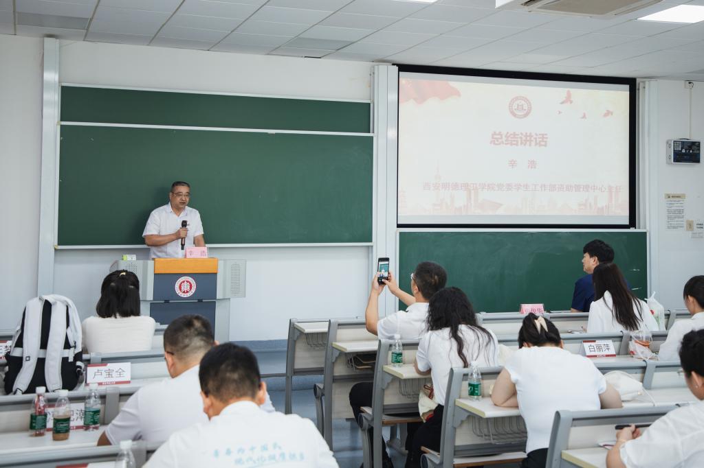 随后,党委学生工作部资助管理中心主任辛浩作总结发言,他从培训班的课程安排、活动开展、学员表现、目标达成等方面进行了回顾总结,认为此次培训有广度、有深度、有温度、有效度,希望全员们通过此次培训更新教育理念,拓宽知识视野,促进专业发展,以更加专业的能力和更加积极的姿态投入学生工作。