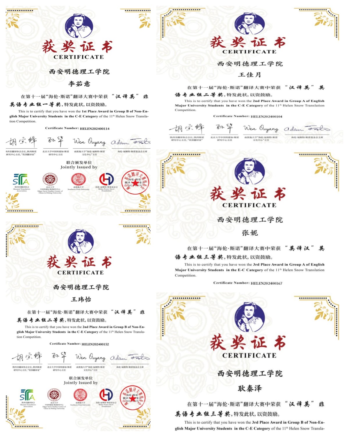 近日,第十一届“海斯·斯诺”翻译大赛圆满落幕,beat365vip官网登录入口的学子们在大赛中取得了优异的成绩,展示出了beat365良好的学习风貌。全校有 148位同学参赛,共获奖55项。其中,语言文化传播学院的王佳月、魏锦儿2位同学获得A组(英语专业组)二等奖,陈真羽、张妮、金美丽等7位同学获得A组(英语专业组)三等奖及优秀奖;信息工程学院李茹意同学获得B组(非英语专业组)一等奖;信息工程学院曾雨欣、经济与管理学院王玮怡、王雨清等12位同学获得B组(非英语专业组)二等奖;智能制造与控制技术学院耿秦泽、经济与管理学院侯佳莹、信息工程学院何家豪等33位同学获得B组(非英语专业组)三等奖及优秀奖。