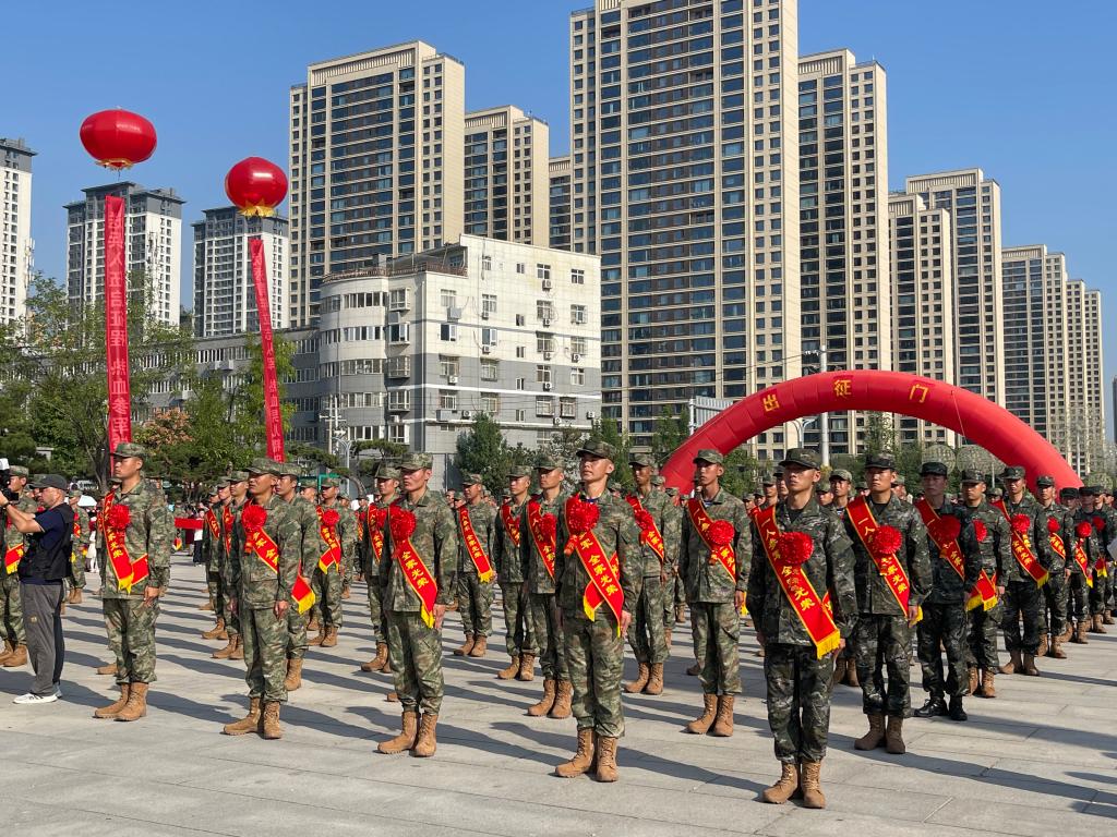 一身戎装酬壮志,热血男儿踏征程。beat36511名经过严格选拔的新兵们身着迷彩服,军姿挺拔,胸佩光荣花,整装待发!