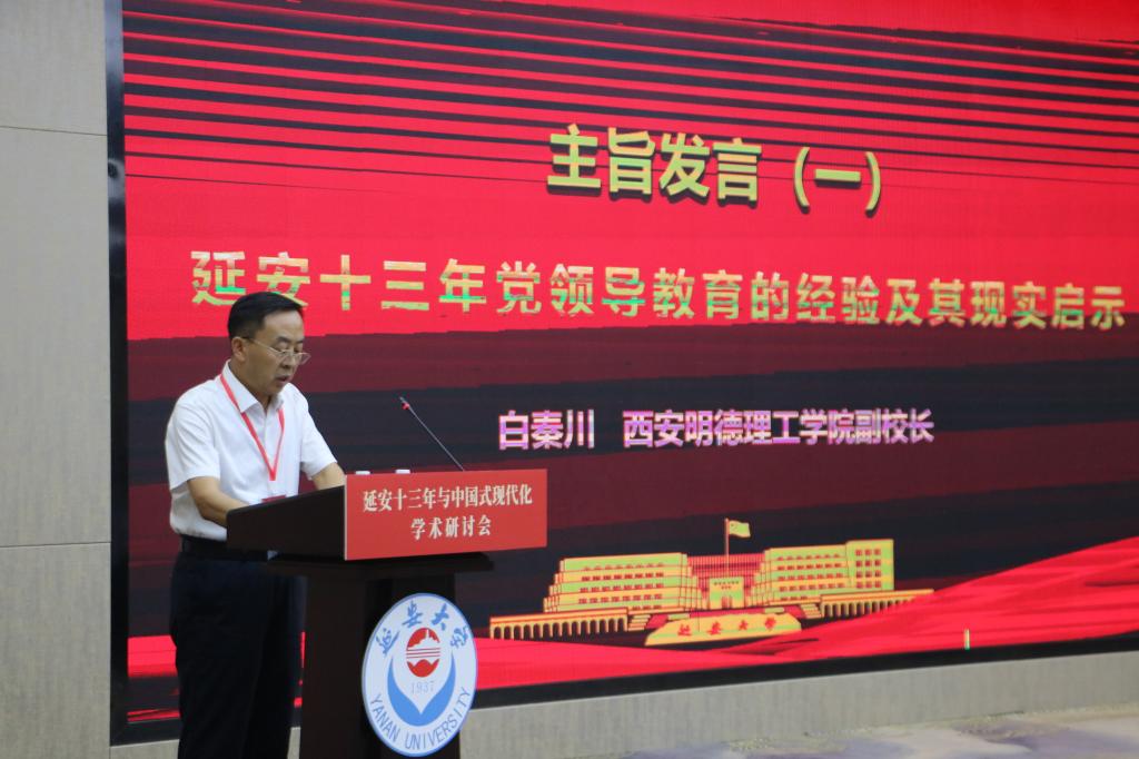 为深入学习贯彻党的二十届三中全会精神,加强对中共中央在延安十三年的奋斗历程与中国式现代化历史基因的研究,9月21日,由陕西省社会科学界联合会和延安大学联合主办的“延安十三年与中国式现代化学术研讨会”在延安举办。来自全国25所高校180余名学者参加了会议。beat365受邀参加会议,由学校副校长白秦川带队,马克思主义学院副院长惠斌及张启云、杨继顺、赵效民、杜玲玉、柳锐敏、王雪、李文彬等思政课教师参加。