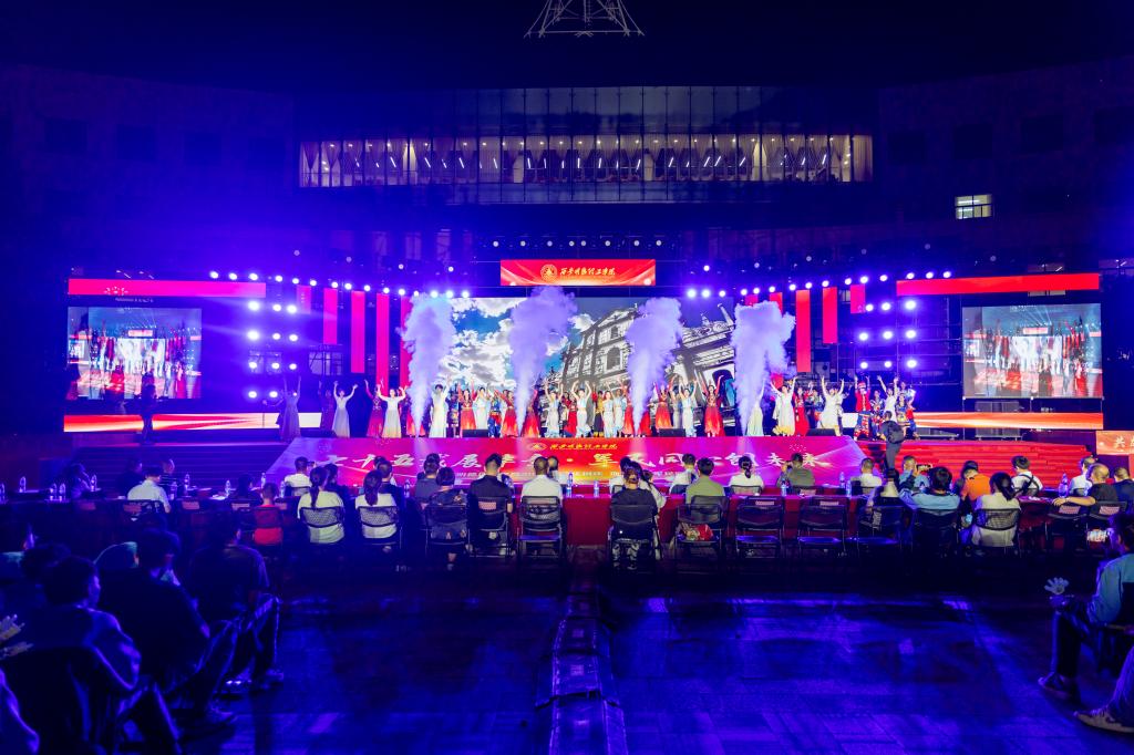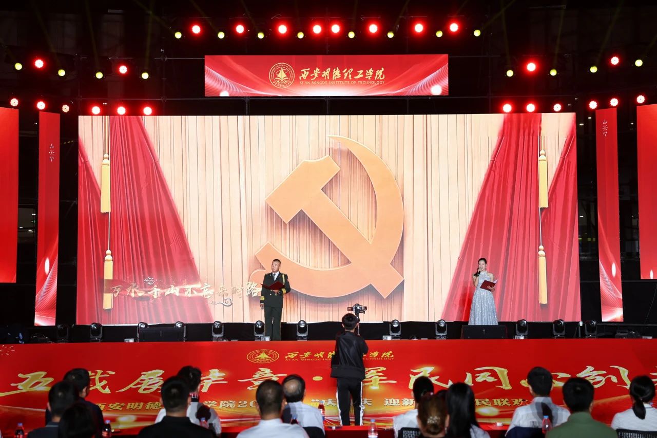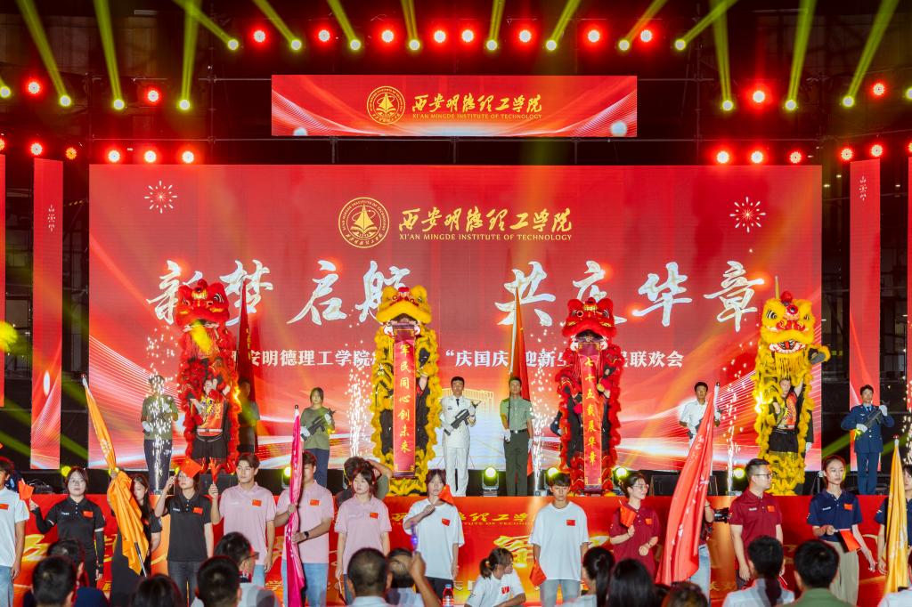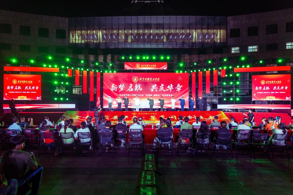 9月26日晚,“新梦启航·共庆华章”学校2024年“庆国庆·迎新生”军民联欢会在中心广场隆重举行。明德源教育集团助理总裁兼常务副总裁、学校副董事长张琳,校长王志刚、党委书记马川鑫、明德源教育集团财务总监田雪,2024级学生军训团团长张军闯、参谋长豆力强,学校党委副书记、副校长、纪委书记白秦川,副校长朱延波,党委副书记、副校长刘星,副校长陈鹏、副校长王斌宁、财务总监马晓军出席大会。金叶科教集团、明德源教育集团部门负责人、学校二级学院领导、职能部门、教辅单位领导参加活动。