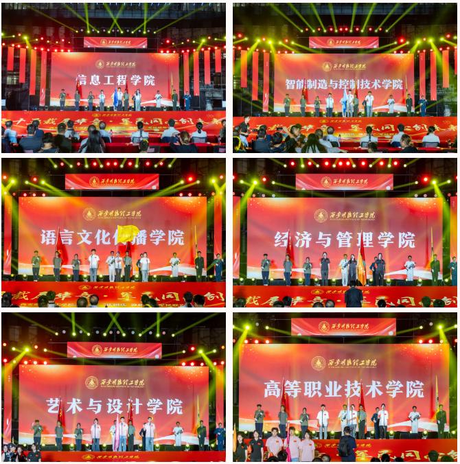 各学院代表高举学院院旗依次上台展示