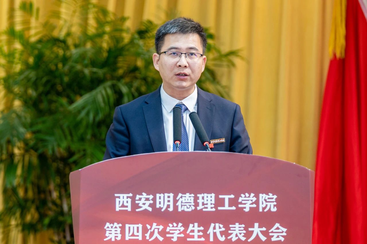 陕西省学生联合会驻会执行主席雍仕航同学致辞,对大会的召开表示热烈祝贺并希望学生会同学们强化政治认同,保持踔厉奋发姿态;坚持服务同学,始终牢记改革方向;坚持聚焦陕西定位,积极投身报国实践。为推进中国式现代化贡献属于明德学子的青春力量!
