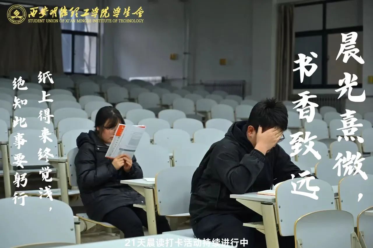3月27日启动的“晨光熹微,书香致远”21天晨读打卡活动,转眼已过半程!这场由校学生会发起的“自律挑战”,让下沉广场成为学习圣地,校园里的阅读氛围愈发浓厚,晨读热潮持续高涨。
