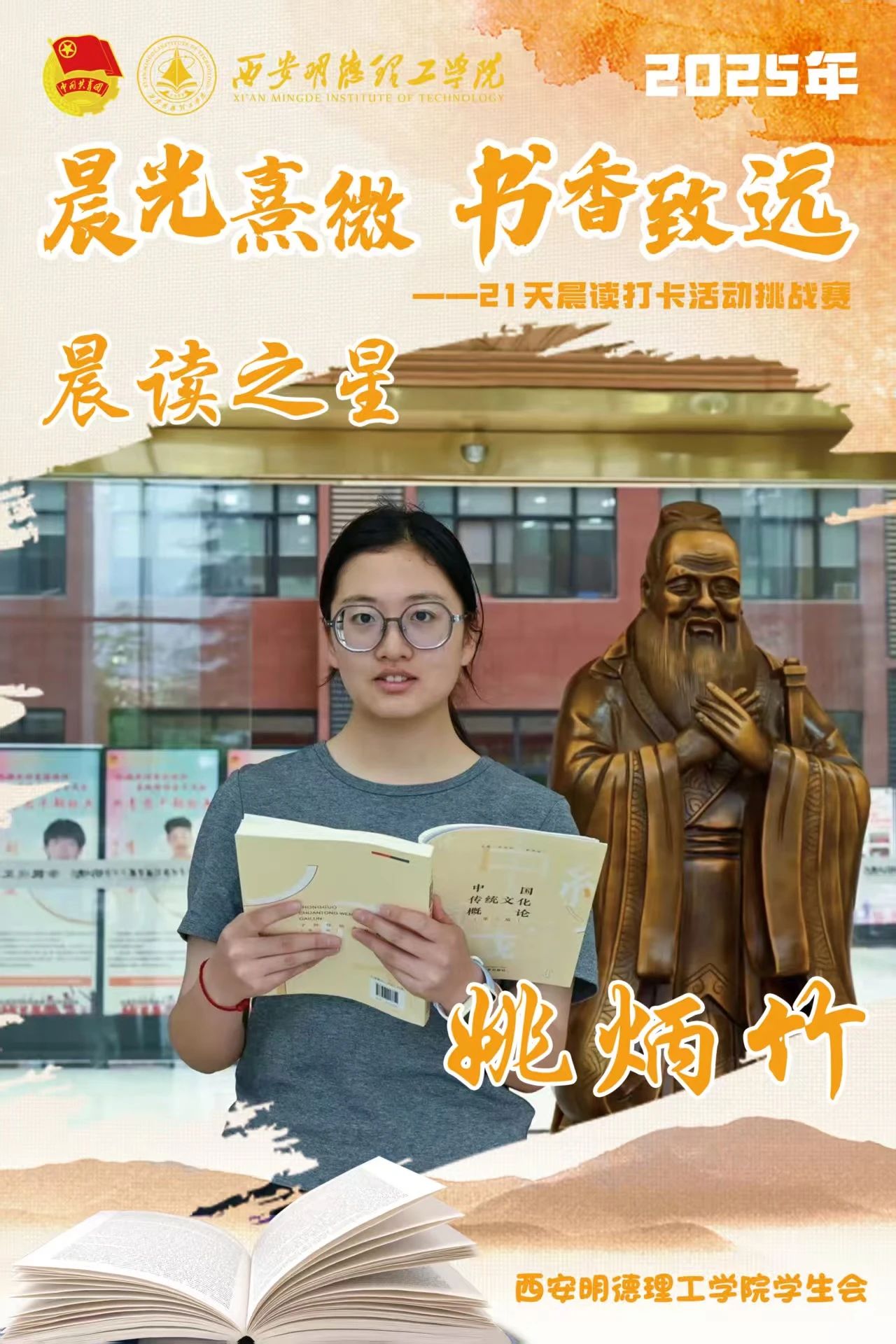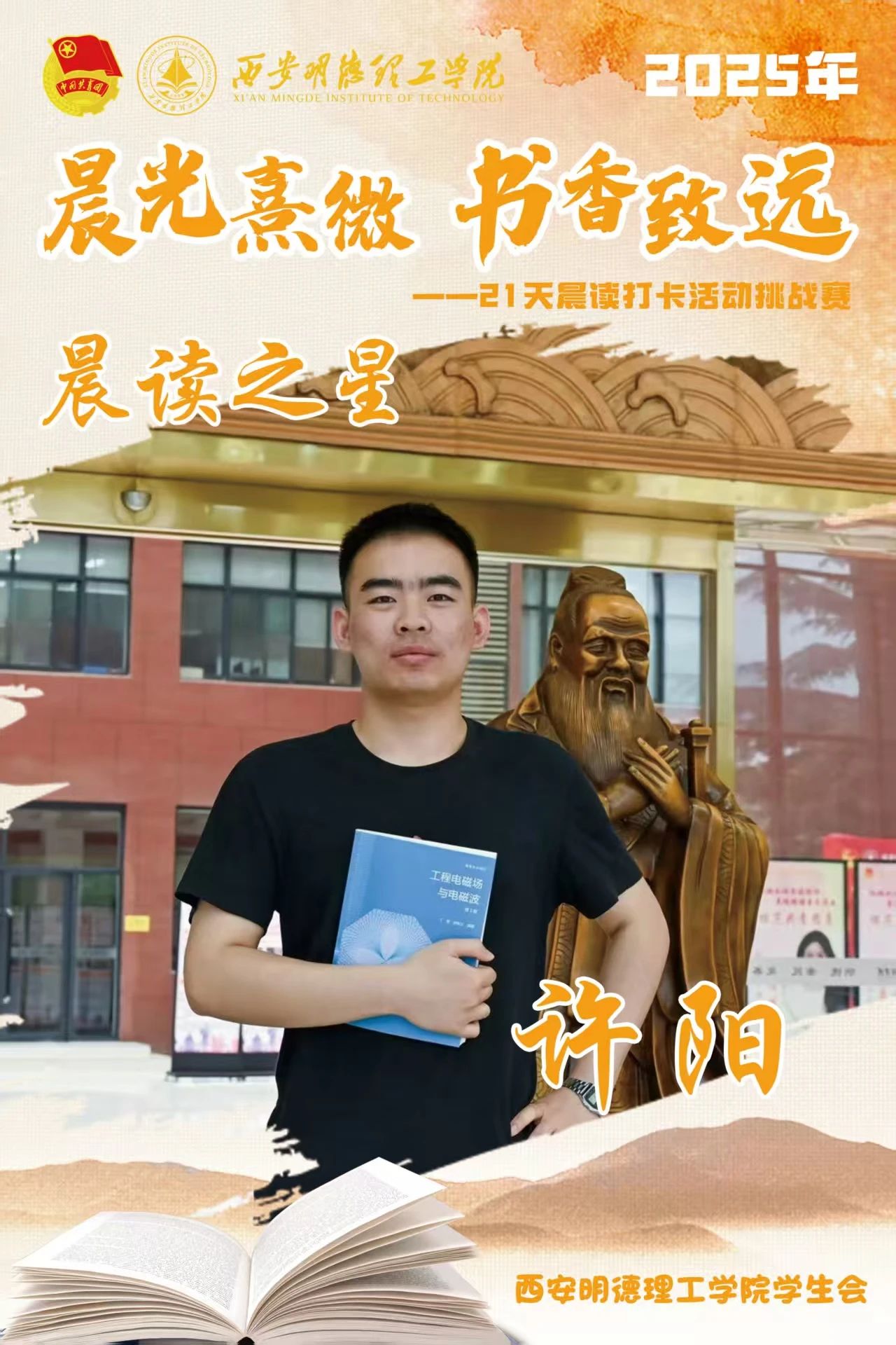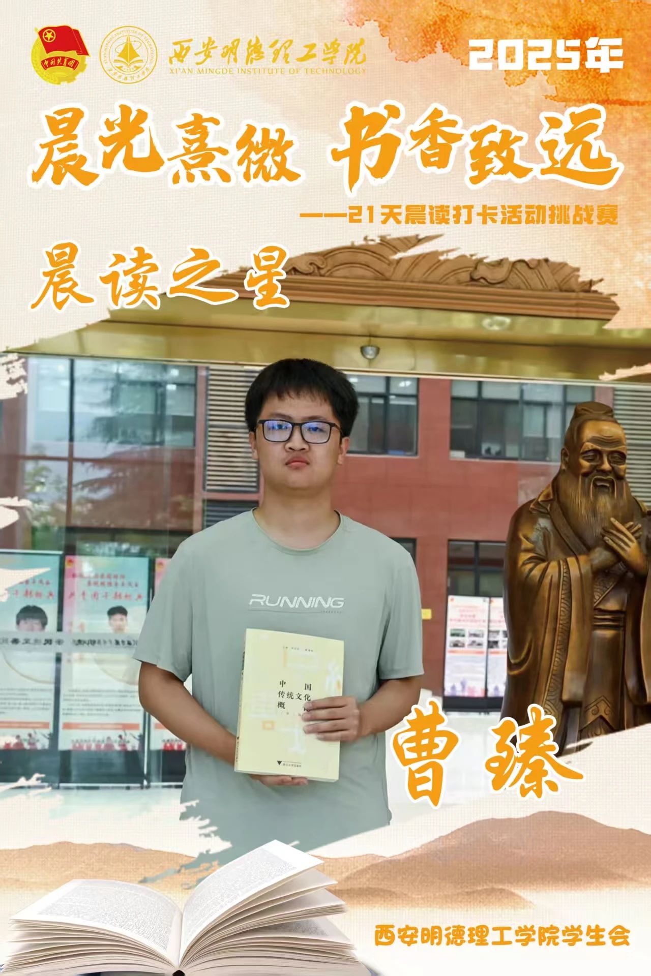 经过21天的坚持与努力,他们用行动诠释了坚持的力量,用毅力收获了知识与成长。随着活动落幕,晨读的余韵仍在校园蔓延,21天不是终点,而是终身学习的起点。愿明德学子以晨读为帆,在书香中继续丈量世界,让每一个清晨都成为追逐梦想的新起点。6月8日,让我们相约表彰大会,为坚持喝彩,为下一段书香征程蓄势启航!