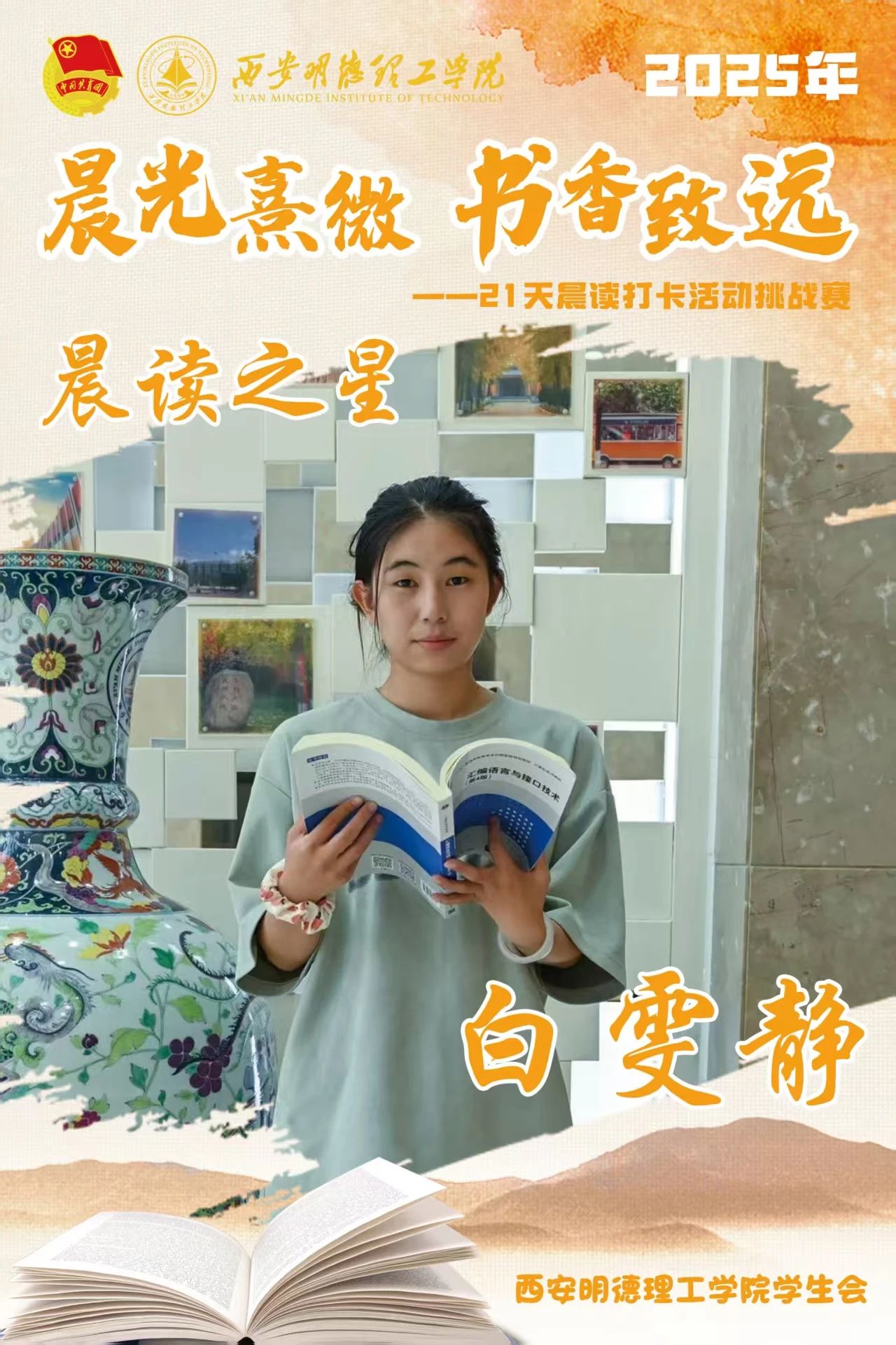 以晨读启智,以书香润心!beat365vip官网登录入口“晨光熹微,书香致远”21天晨读打卡活动即将迎来高光时刻,我们将隆重举行活动总结表彰大会,诚邀全校师生共赴这场关于“坚持与成长”的盛会,见证34位“晨读之星”的荣耀时刻!