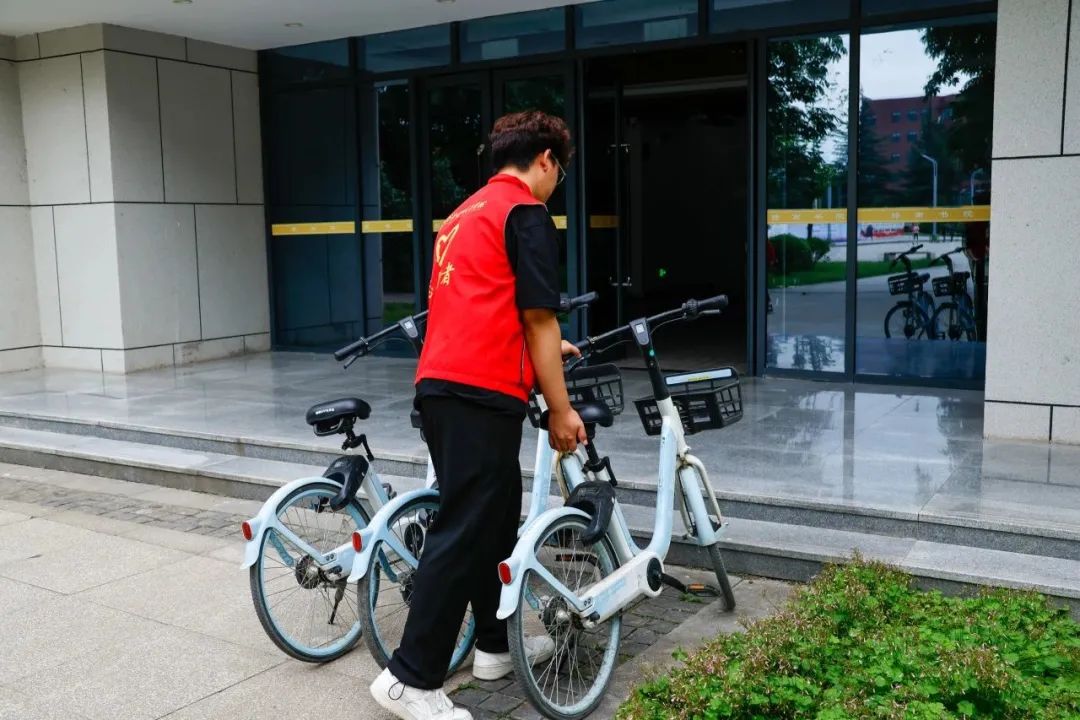 活动中,志愿者们用积极的态度,饱满的热情去服务同学,提醒他们规范摆放共享单车,把“不合群”的共享单车归位。摆放自行车虽然看似是一件很简单的事,但每位志愿者认真工作,在摆放自行车的过程中大家尽职尽责、团结协作,有条不紊的完成每一辆自行车的有序摆放,确保“所到之处,赏心悦目”。充分展现了志愿者的团结、友爱、认真、负责的优良品质。在大家共同的努力下,顺利地完成了本次的志愿活动,让校园环境变得更加整洁、文明。