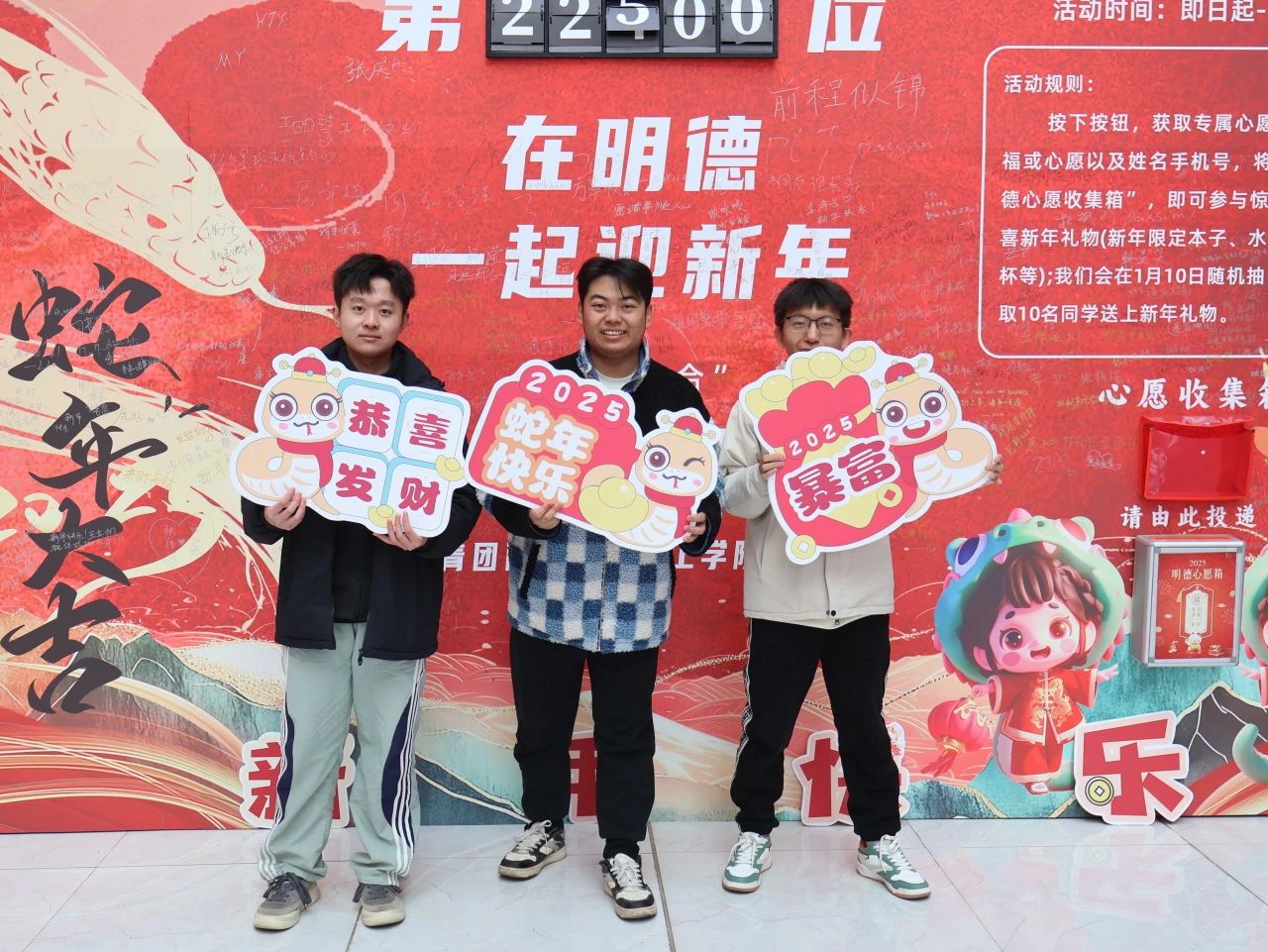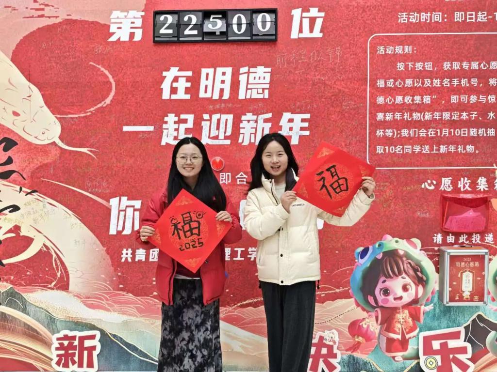 且以游园辞旧岁,共赴新元启华章!12月31日学校“在明德 一起迎新年”新春游园会在明志楼中厅顺利开展。此次活动由校团委主办,学生社团管理中心、中华传统文化社、国艺非遗社、未晞汉文化协会以及书画协会承办。本次活动为明德学子提供了一个欢乐团聚的平台,大家在轻松愉悦的氛围中告别过去一年,共同迈向充满希望的2025年。