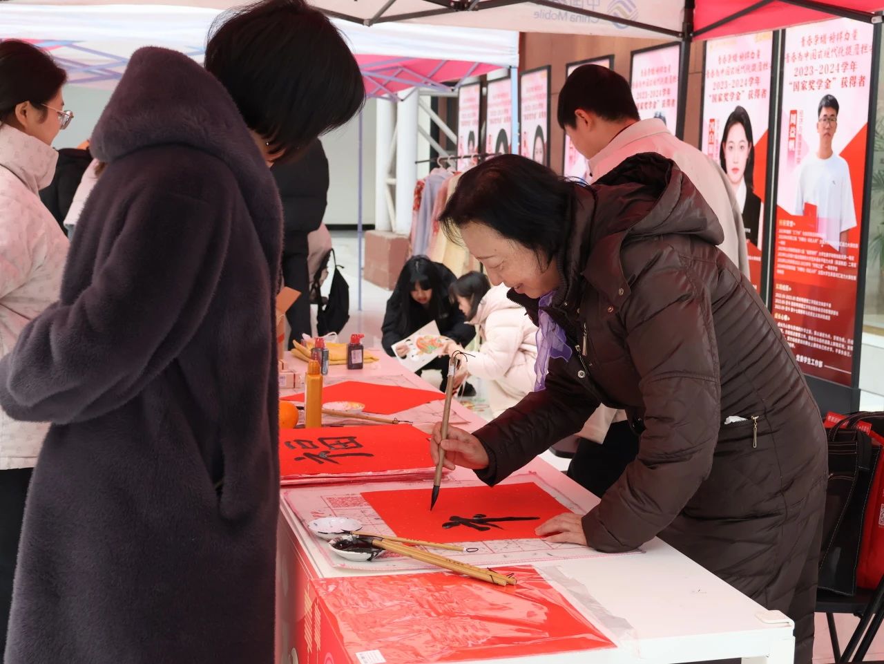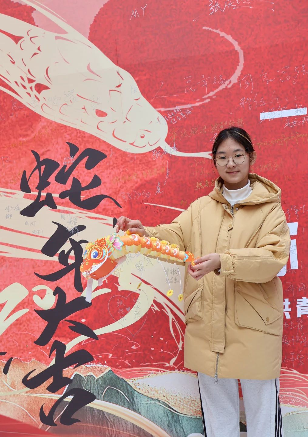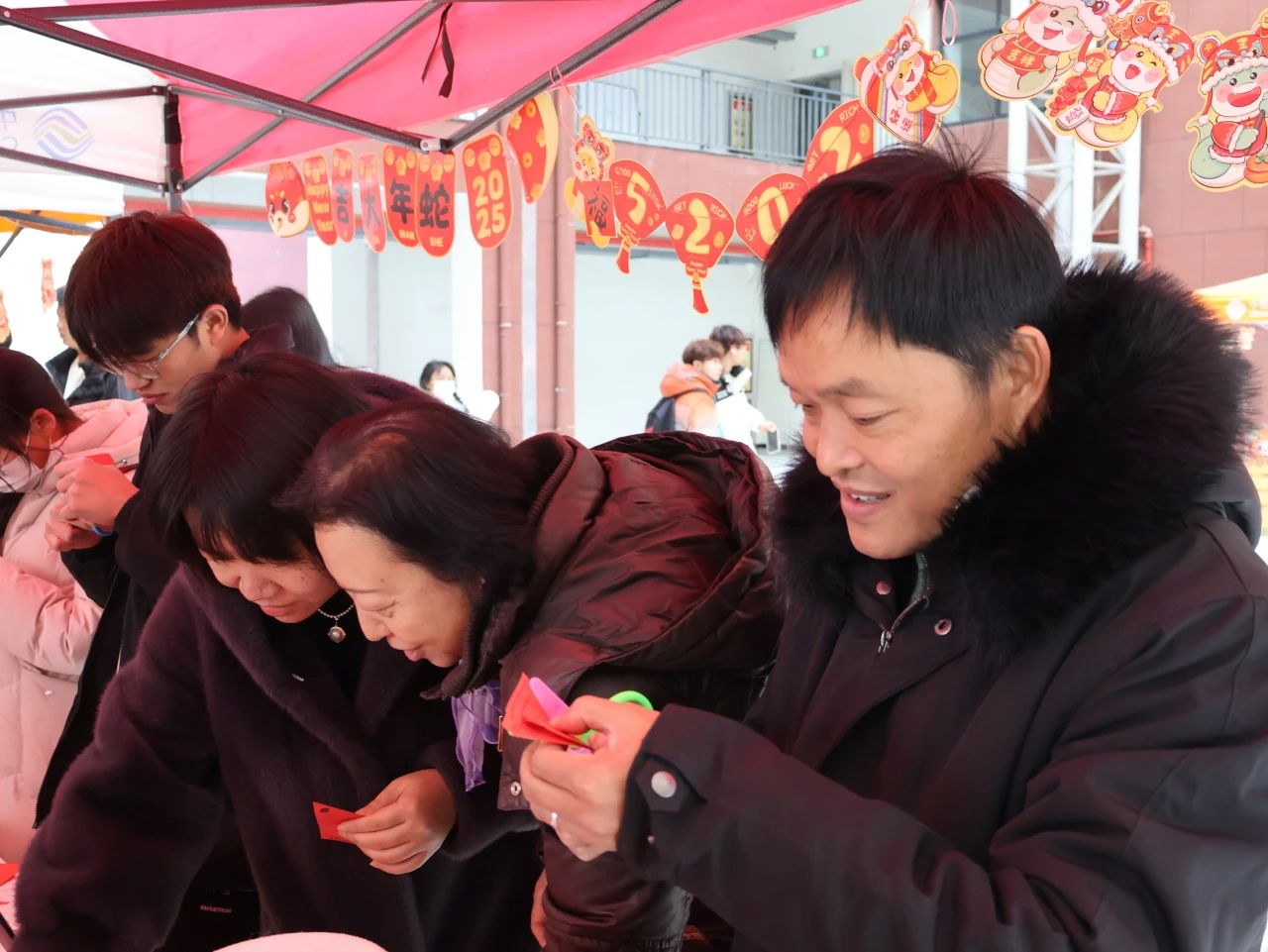 活动现场处处洋溢着喜庆的节日氛围。窗花映福祥,彩纸在同学们手中轻盈翻转,不一会儿,一幅幅精美的窗花便跃然而出,寄托着对新年美好生活的期盼;同学们挥毫泼墨,书写着一个个苍劲有力的“福”字和寓意吉祥的对联,笔锋流转间尽显传统书法的韵味与风骨,为即将到来的蛇年增添了浓浓的年味。