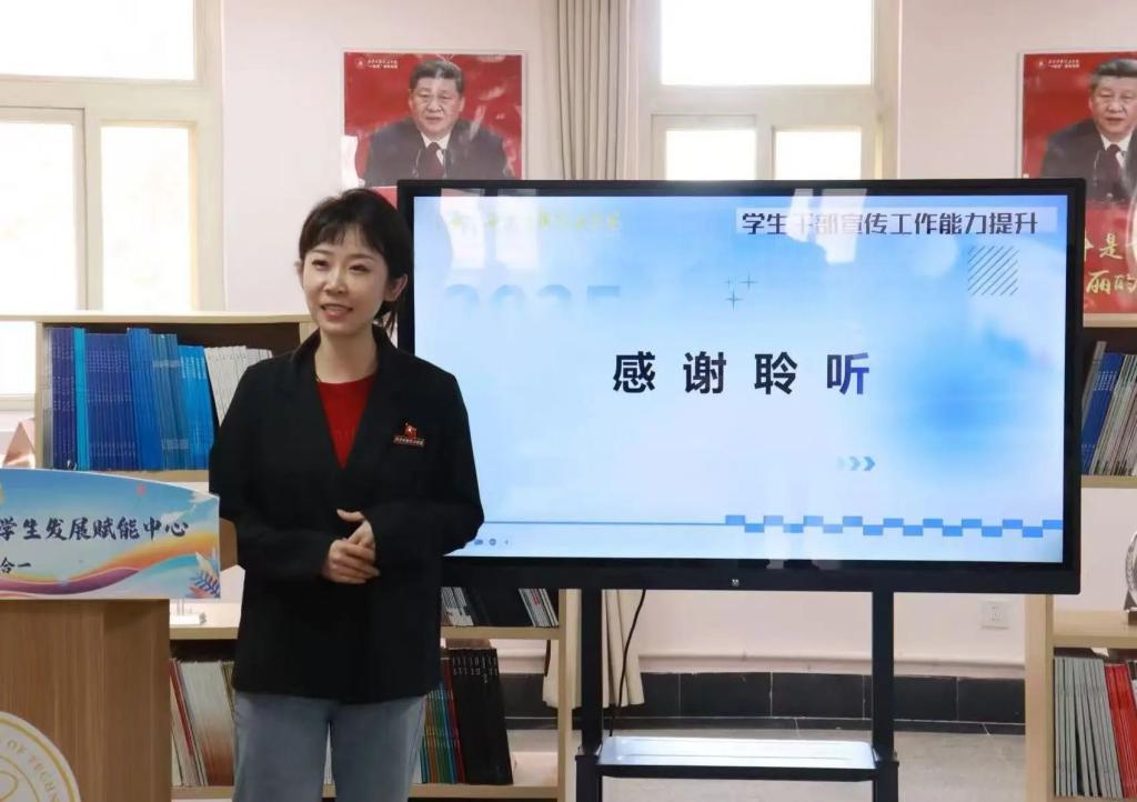 为进一步提升社团宣传工作水平,加强各社团宣传队伍建设,2025年4月28日,学生社团管理中心在梅苑“一站式”学生发展赋能中心开展“新媒体时代宣传人的三重修炼”主题推送培训会。校团委李丹妮老师、学工部王悦琳老师、学生社团管理中心成员及全体社团负责人参与此次培训活动。