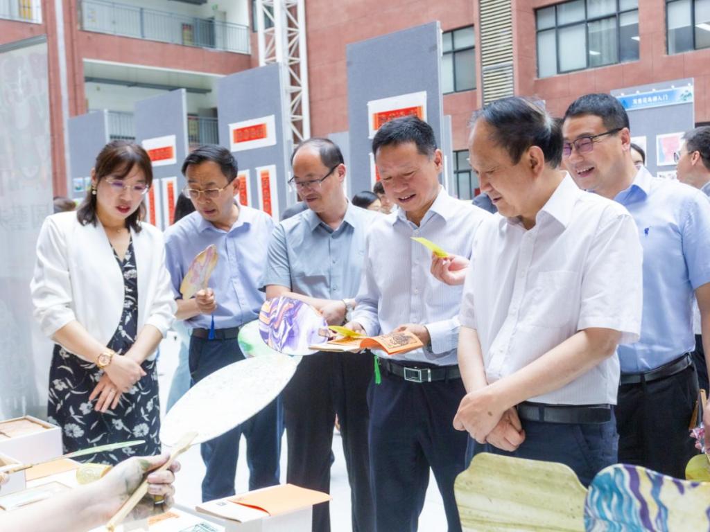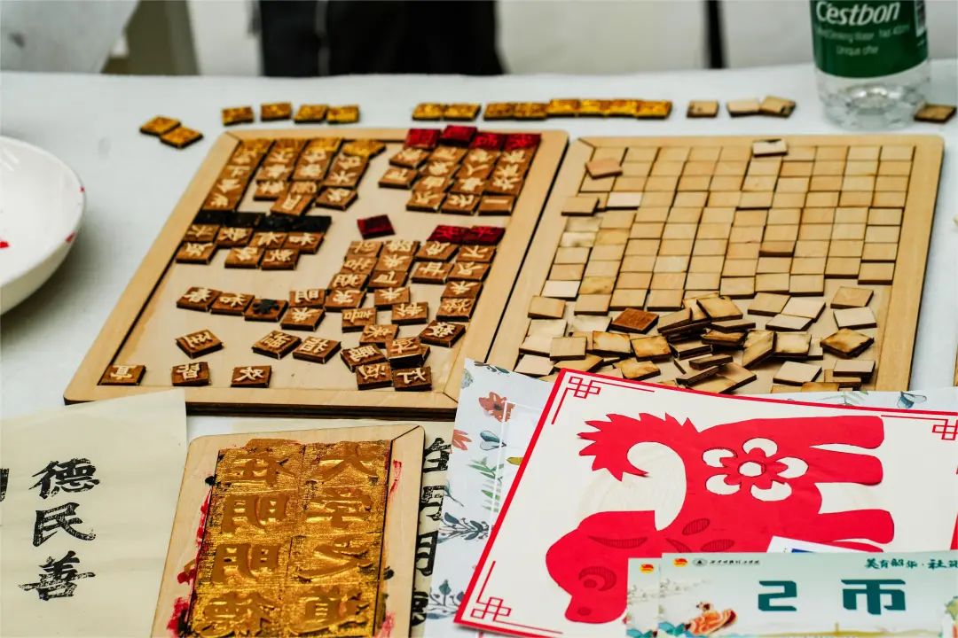 开幕式结束后,校领导一行移步非遗文化集市参观指导,多个学生展位有序陈列,涵盖艺术、文化、科技等多个领域,每个活动展位都精心布置了独具特色的展示区域,通过丰富多样的形式宣传艺术文化特色。书画社展位上,一幅幅笔精墨妙的书法作品创作在书签、折扇上,吸引了众多师生的参与创作;精美的手工艺品,展现出同学们的奇思妙想与精湛技艺;文化社团更是成为现场焦点,同学们通过非遗作品展示、互动体验等方式,让传统文化焕发新的生机,师生通过动手实践感受传统工艺的千年智慧。