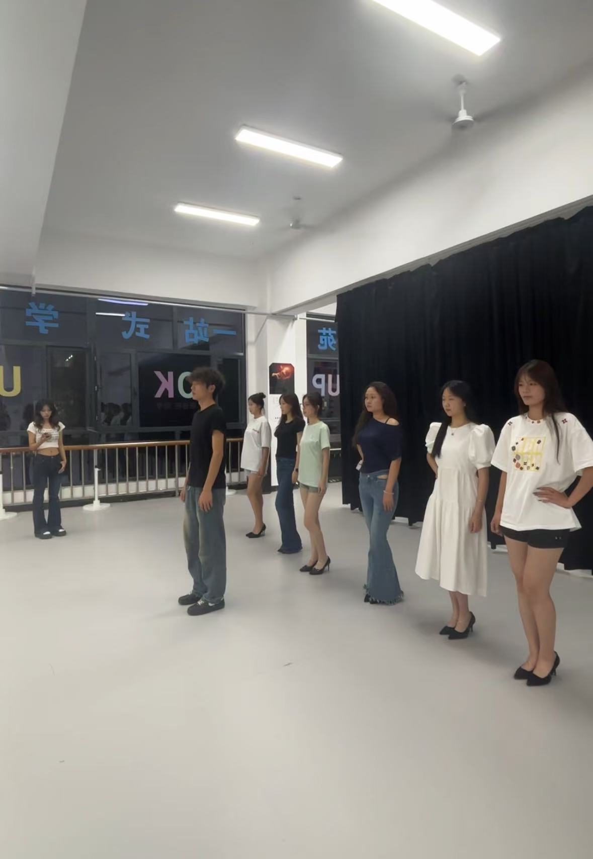 模特队的《步履芳华》以“新中式”为灵感,在李丹妮老师的指导下,队员们将训练重点放在“气质与仪式感”的呈现上。从台步的稳健度到微表情的管理,从服装与音乐的配合到整体队形的流畅,他们用一遍又一遍的练习,让“毕业红毯”成为学长学姐记忆中“最值得收藏的风景”。