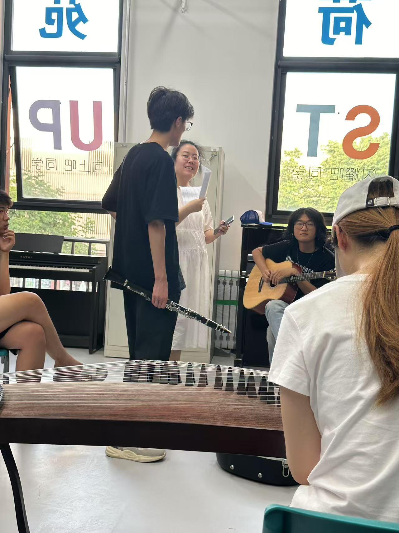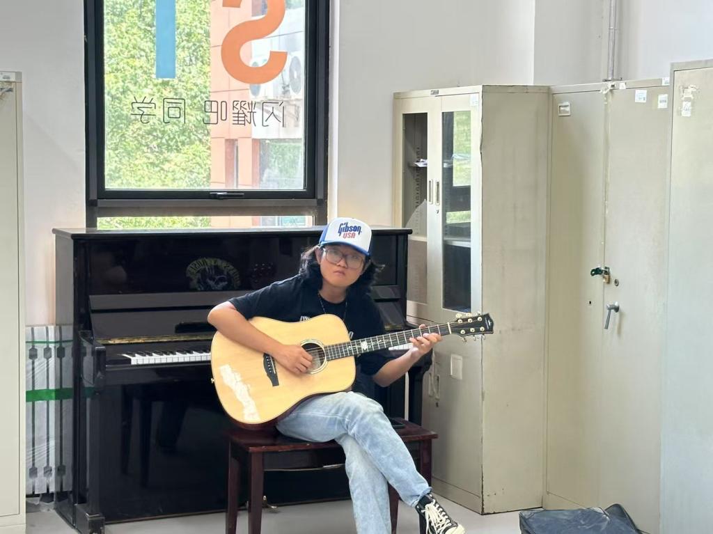 器乐队的《那年护花声》作为晚会的“隐形旁白”,在樊思奇老师的指导下,队员们专注于“音乐与场景的契合”。从吉他的悠扬铺垫到古筝的情感递进,从间奏的节奏配合到尾声的余韵留存,他们反复调试乐器的音色与编曲的细节,只为让每一个音符都成为“懂你不舍”的温柔注脚。
