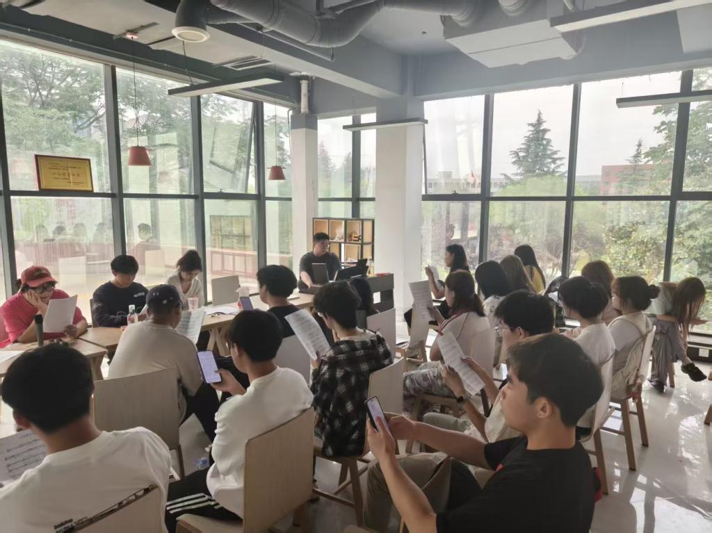 本月,声乐队聚焦《世界赠予我的》《老师我想你》《是老师,是学生》三首作品,围绕“成长”与“感恩”展开训练。在蓝启航老师的指导下,队员们从基础发声练习到整体情感传递,逐步将“毕业”的复杂心绪融入旋律:或用清亮的音色诉说对校园的眷恋,或用温柔的和声传递对师长的感谢。训练室里,反复的合音调整、情感共鸣的探讨,最终凝结成舞台上“不说再见”的深情。
