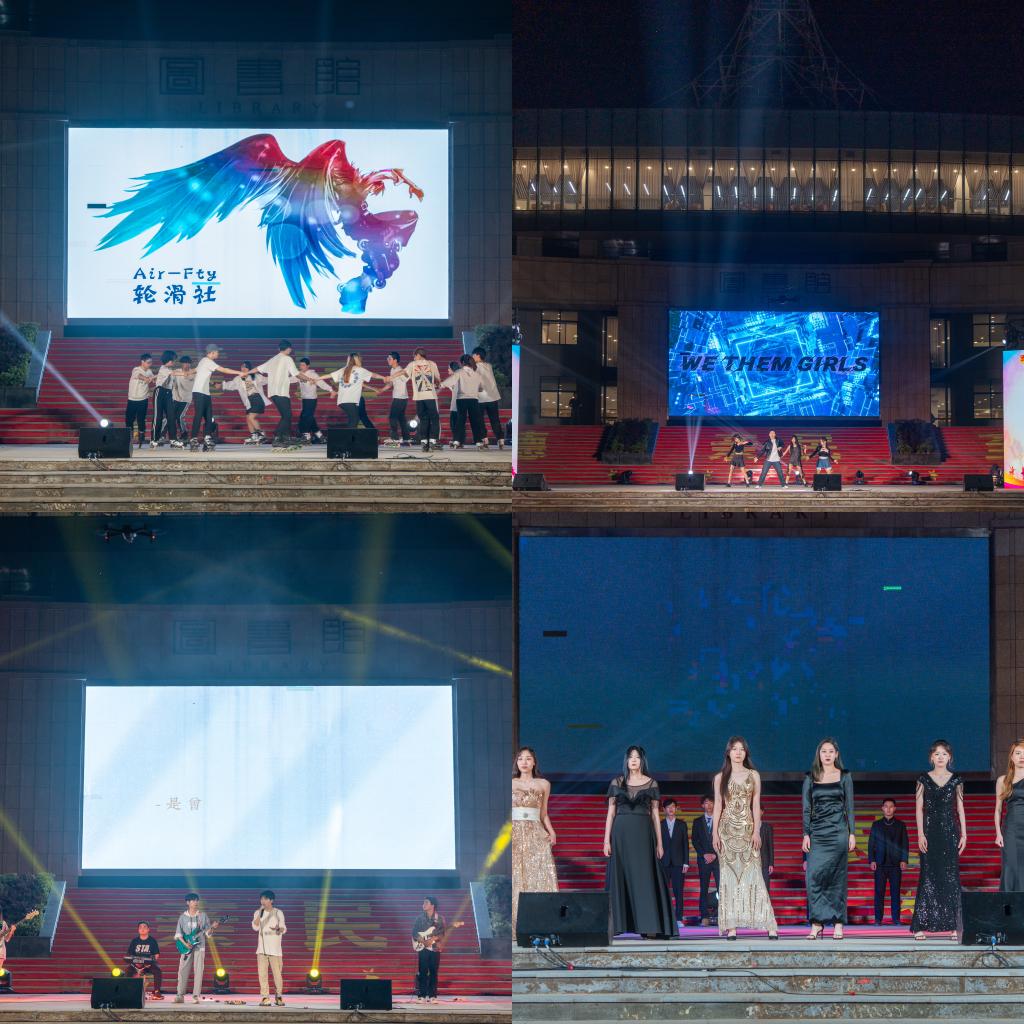 开幕式以歌舞晚会的形式呈现。活动由54个学生社团的旗帜为道具编排的旗舞拉开序幕。活动中,大学生艺术团、校街舞队、学校航模队、轮滑社、瑜伽协会、中国传统文化社、跆拳风道队、魔术社以及西北工业大学的学生社团代表表演了节目。节目有展示中国传统文化服饰的服装秀,有展示青春风采的歌舞《这场青春值得骄傲》《STRANGE THINGS》《花样年华》《七里香》等;有乐队演唱《不能说的秘密》;有川剧《变脸》表演;有轮滑舞《冰之舞》;有朗诵《红船从南湖起航》;有民族舞《花儿为什么这样红》;有瑜伽表演《我和我的祖国》;有模特走秀等。节目形式丰富多样,活动氛围轻松愉悦,节目内容高雅又富有内涵。