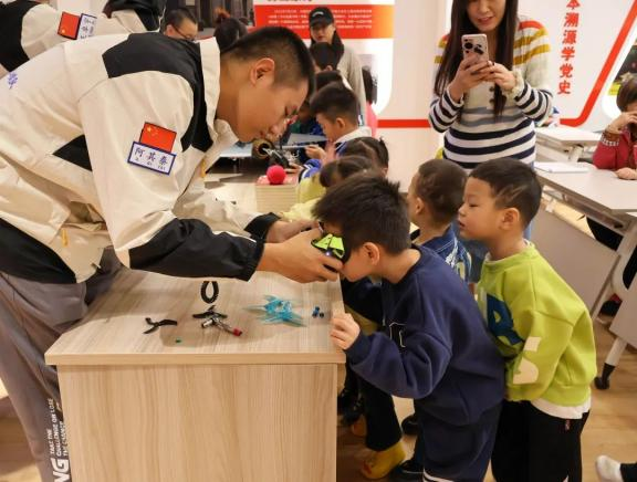 当孩子们和家长们陆续抵达,空气中弥漫着浓厚的好奇与期待。活动尚未正式开场,孩子们已迫不及待地围聚桌旁,一双双明亮的眼睛闪烁着求知的光芒。航模队员们则化身为知识的园丁,耐心地解答每一个疑问,仿佛在孩子的心田轻轻播下科学的种子。