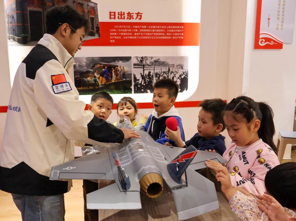 当天上午,10位热情洋溢的青年志愿者与技艺精湛的航模队员,带着各种各样的飞机模型——从威猛的F-35战斗机,优雅的单翼飞机,到独特的三角翼设计,再到灵活的多旋翼无人机,甚至是精密复杂的飞控系统,悉数亮相活动现场。这些精致的模型,宛如一个个微型世界,静静地诉说着人类对天空的向往和征服。