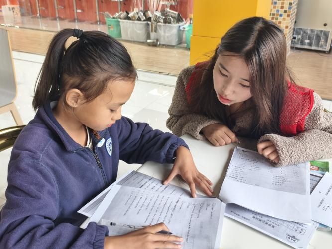 学业辅导环节中,志愿者耐心且细致地解答孩子们的疑惑,借助生动的例子带领孩子们探索知识的海洋。不仅要教会他们如何解题,更为重要的是为了激发孩子们对学习的热爱与好奇心。这不仅仅是一次简单的辅导,更是一场心灵的交流,让食堂阿姨们深感欣慰,也让孩子们的童年变得更加丰富多彩。