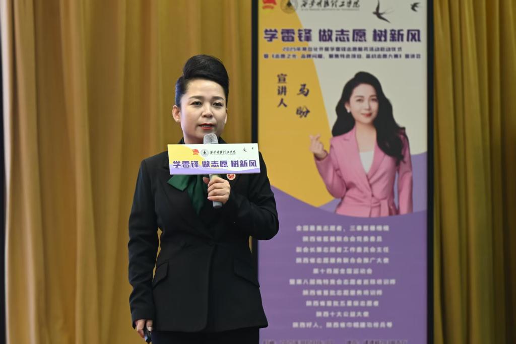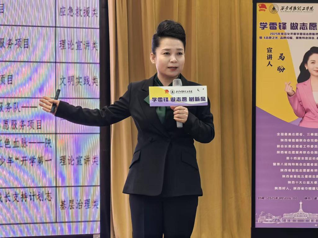 在专题宣讲环节,全国最美志愿者、陕西省慈善联合会副会长马盼老师以《志愿之光 品牌闪耀》为主题,结合二十余年公益经验进行深度分享。通过对全国、全省的志愿服务项目大赛金奖案例的解析,她提出“需求导向、特色引领、品牌增值”三大战略,建议学校立足工科优势,聚焦“科技助残”“数字反哺”等新兴领域,构建“专业教师指导+学生团队运营+社会资源联动”的创新模式。现场还展示了其团队打造的“慈联康桥 情满山乡”“暖心玩具馆”项目”等品牌项目孵化路径,为师生备战志愿大赛提供方法论指导。