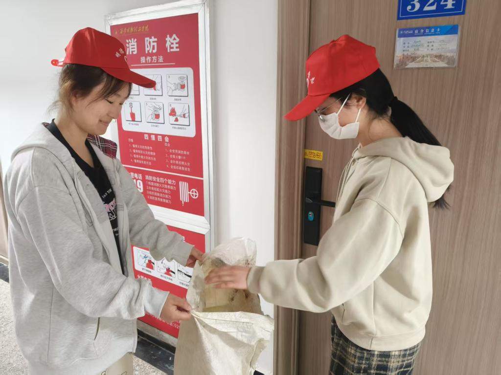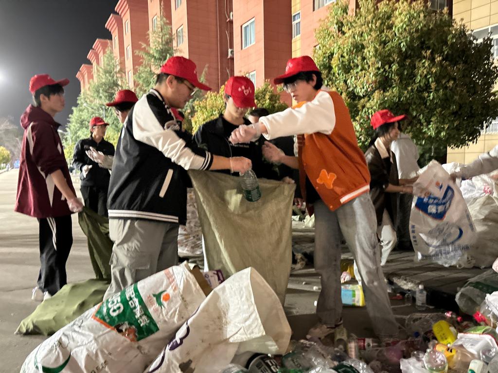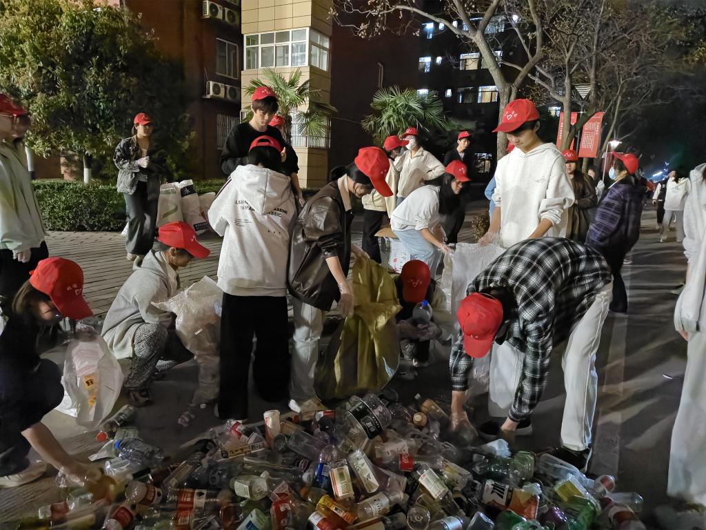 活动伊始,志愿者们头戴统一的帽子,精神饱满地在中心广场前集合,并前往同学们的宿舍楼,耐心地询问大家有没有不需要的废瓶子。他们穿梭于宿舍之间,认真搜寻着每一个角落,不放过任何一个可以回收的瓶子。