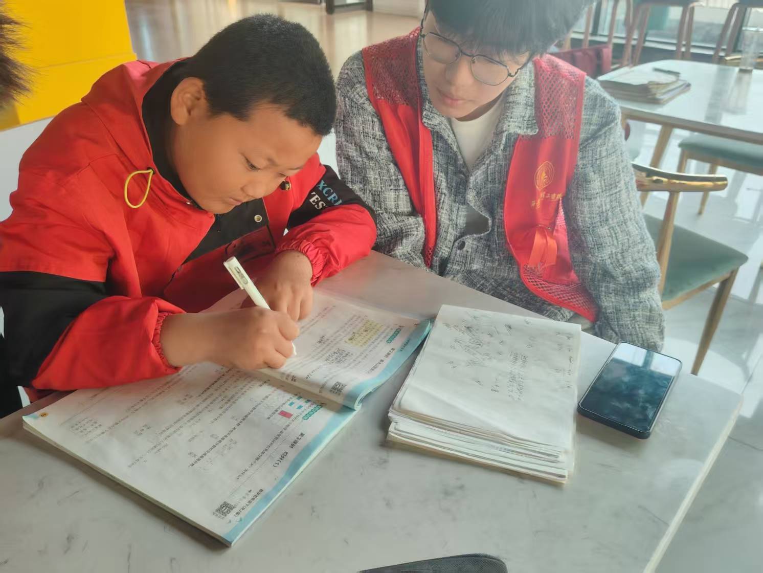 参加此次家教活动的志愿者们,践行服务初心,以热情饱满的态度,助孩子们解疑答惑,在与孩子的激情讨论中,帮他们获得真知,用新方法,为他们打开新思路。他们解惑答疑的声音如春风荡漾般回荡在各个角落,穿梭在他们身旁,渐渐消失。留下的唯有书本上,真理的脚印。