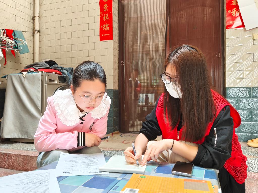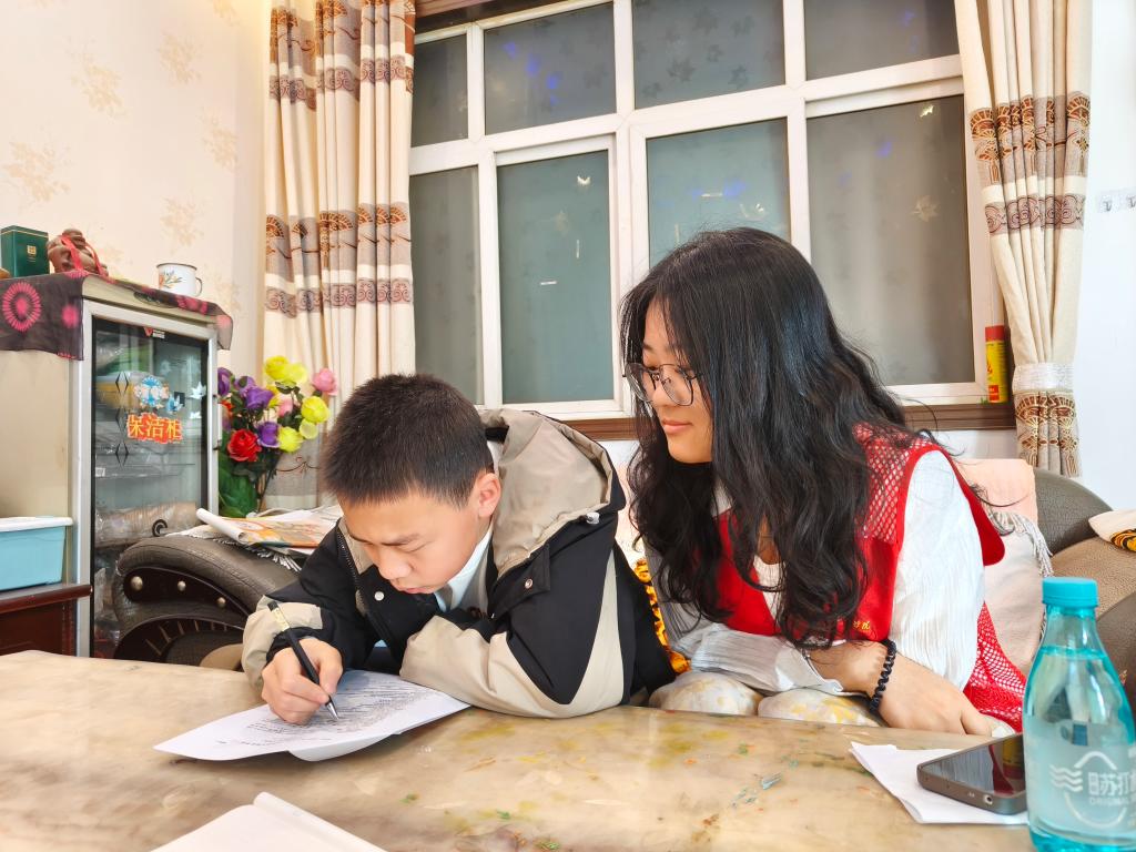 清晨,志愿者们在中心广场上集合列队,整装待发,以饱满的精神状态开启这场知识传递之旅。抵达村委会后,志愿者们迅速领取受教儿童的信息卡,在负责人引导下前往受教家庭对受教儿童进行课业辅导。