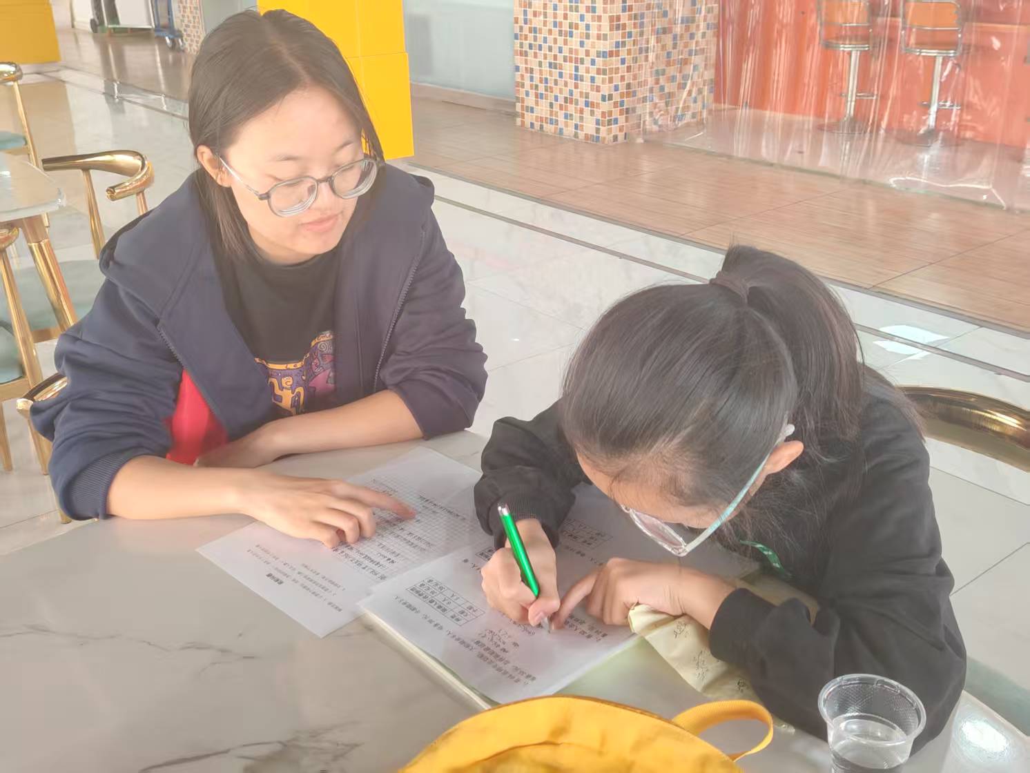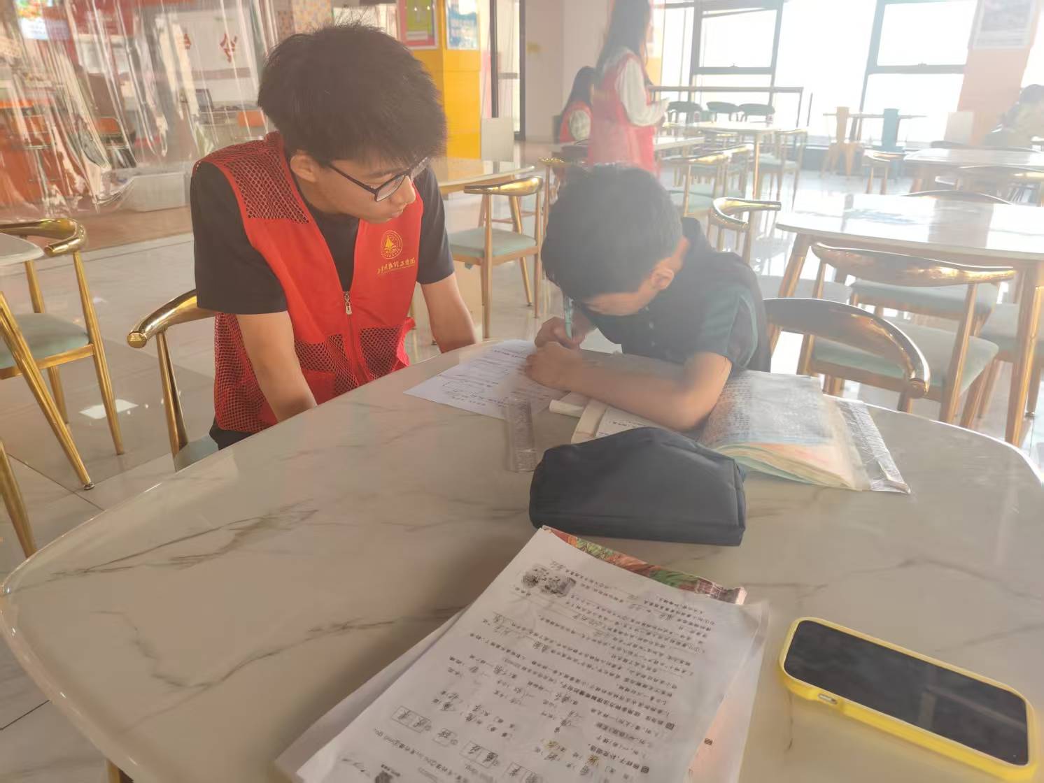 在轻松愉悦的学习氛围中,孩子们全神贯注,认真聆听志愿者们的教诲。每一套公式,每一个汉字,不断丰富着小朋友的知识储备,让周末生活更加充实。
