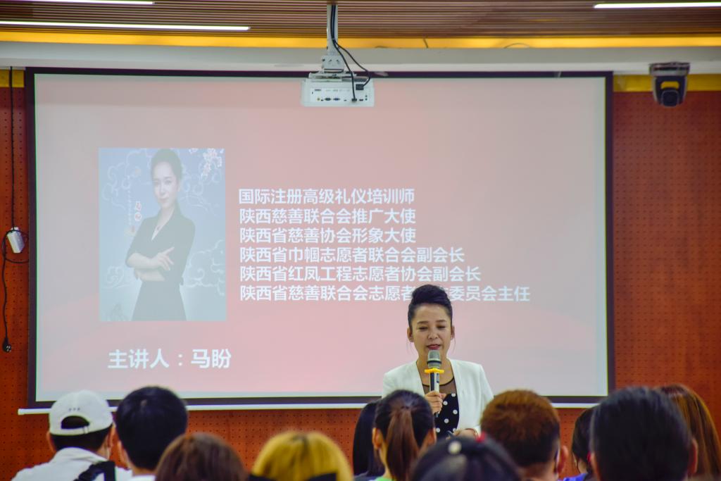 为了更好地服务新生,提高迎新志愿者的服务意识、服务质量和服务水平,顺利完成迎新工作。学院于9月3日在明志楼311学术交流中心举办了2020年迎新志愿者培训工作会。国际注册高级礼仪培训师、陕西慈善联合会推广大使、陕西省巾帼志愿者联合会副会长、陕西省慈善联合会志愿者工作委员会主任马盼老师为迎新生志愿者师生作了题为《志愿者精神和志愿者礼仪》的专题培训,培训会由童杨梓主持。