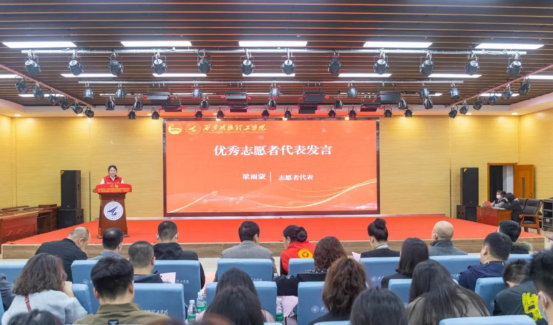 优秀青年志愿者代表梁雨萌同学发言,她呼吁大家作为新时代新青年,理应深刻把握雷锋精神的强大内核,内化于心,外化于行,学习他热爱党、热爱祖国的崇高理想和坚定信念,积极参与雷锋精神宣讲、爱国主义教育等形式多样的红色教育活动,传承红色基因,赓续红色血脉,永远跟党走,奋进新征程。