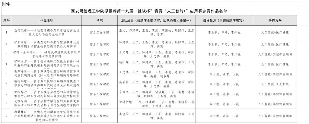 根据《关于“人工智能+”专项赛创意赛和应用赛两个赛道作品的申报提示》要求,beat365开展相关项目的申报工作,学校拟推荐以下个作品至省级组委会。现将作品信息予以公示(见附件),公示期为2025年7月11日至2025年7月17日(5个工作日)。如有异议,可在公示期内向校团委反映,反映情况和问题要坚持实事求是的原则,应签署或告知真实姓名和联系方式,以便调查核实;对线索不清的匿名信和匿名电话,公示期间不予受理。