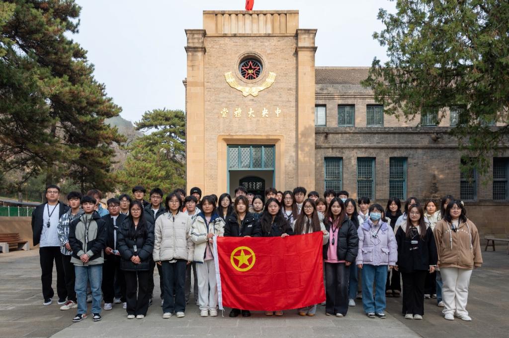 随后,同学们前往杨家岭革命旧址。这里,曾是中国共产党中央领导机关的所在地,见证了中国革命的许多重要历史性时刻。同学们通过参观毛泽东旧居、朱德旧居、中央大礼堂旧址等,感悟革命先辈们在艰苦岁月中为国家和人民不懈奋斗的精神。在召开中共七大的中央大礼堂旧址,同学们仔细聆听讲解员对礼堂和中共七大会议内容的介绍,感受老一辈革命家们在艰苦卓绝的斗争中所展现出的智慧和勇气。