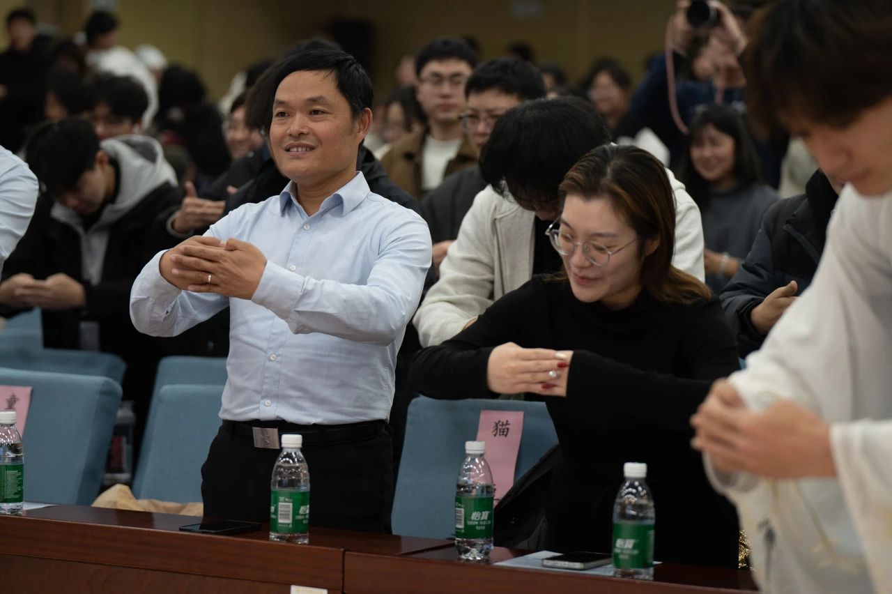 对襟齐腰的清新秀丽,袒领半臂的娇俏灵动,褒衣博带的洒脱超凡,衣袂飘飘的诗意风流。主持人的讲解深入浅出、循序渐进,大家也在其亲身示范的过程中逐一参悟,纷纷效仿起来,一副国泰民安、民族振兴之图愈演愈现。