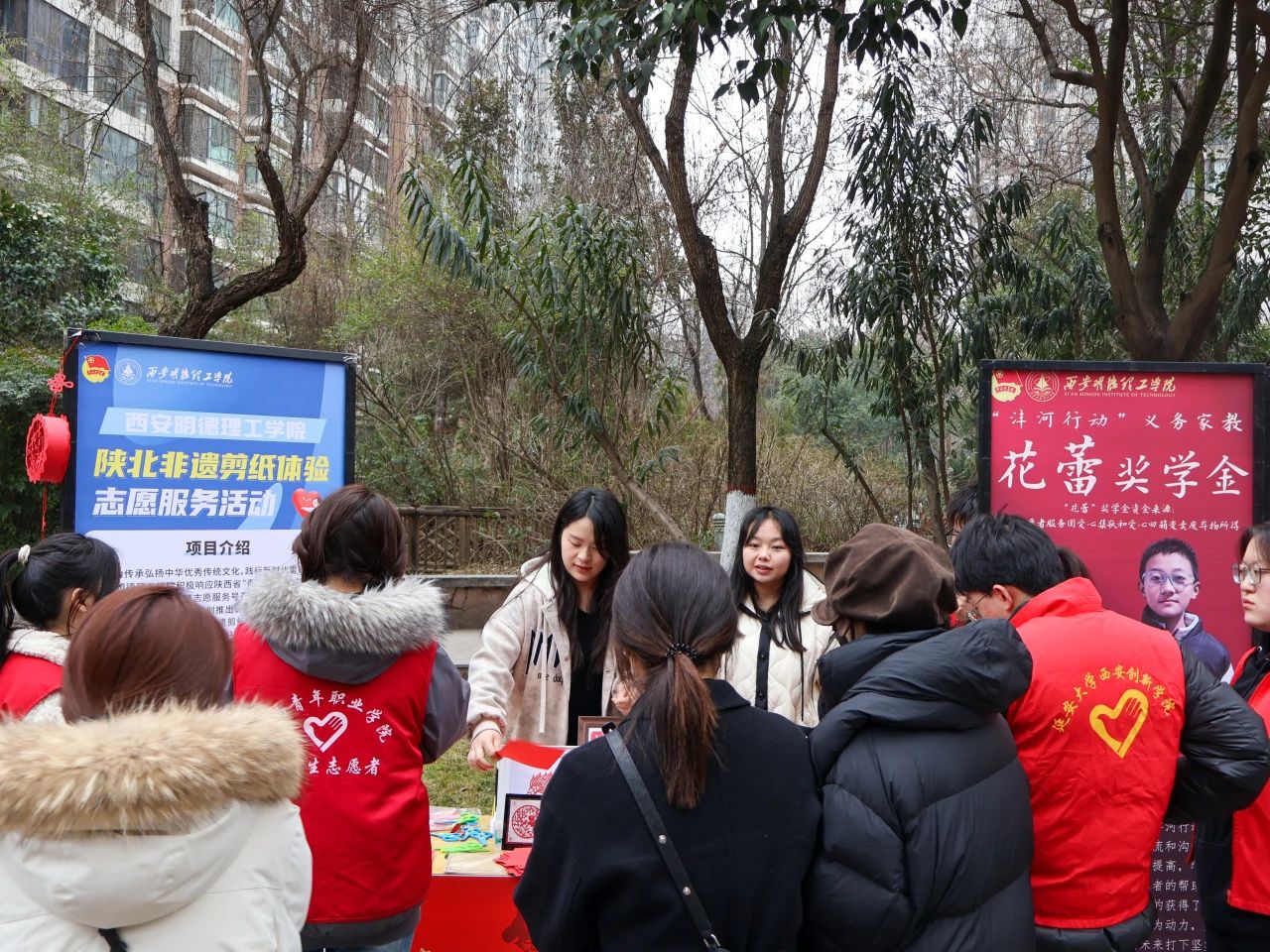 近年来,学校打造了“1245”志愿服务和社会实践工作体系,累计培育志愿服务队30余支,年均开展活动500余场,服务时长超10万小时。2024年斩获陕西省社会实践示范院校称号,形成志愿服务“全员参与、全程贯穿、全域覆盖”的生动局面。在国家级赛事中,“千声助盲童,万心祝西藏”项目勇夺中国青年志愿服务项目大赛金奖,十四运会志愿服务获评国家级优秀组织单位。省级层面,“沣河行动”在陕西省志愿服务“双赛”中连获三等奖及优秀奖。市级项目“志愿同心,育梦秦岭”“雪域阳光书屋”等也持续绽放异彩,形成了独具特色的志愿服务品牌矩阵。