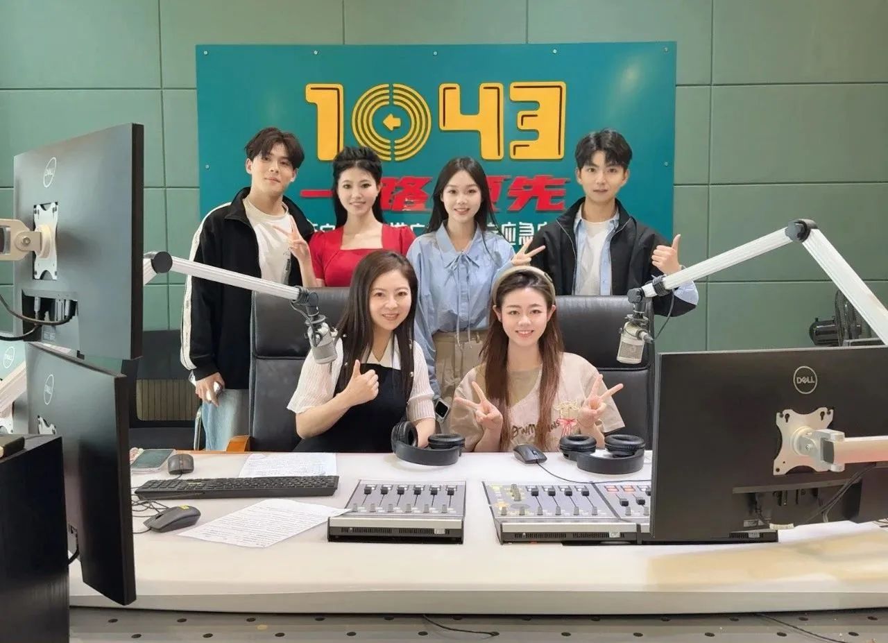 2025年4月23日,艺术与设计学院播音与主持艺术专业同学在西安广播电台交通旅游广播(FM104.3)《大学生来了》节目中精彩亮相现场。