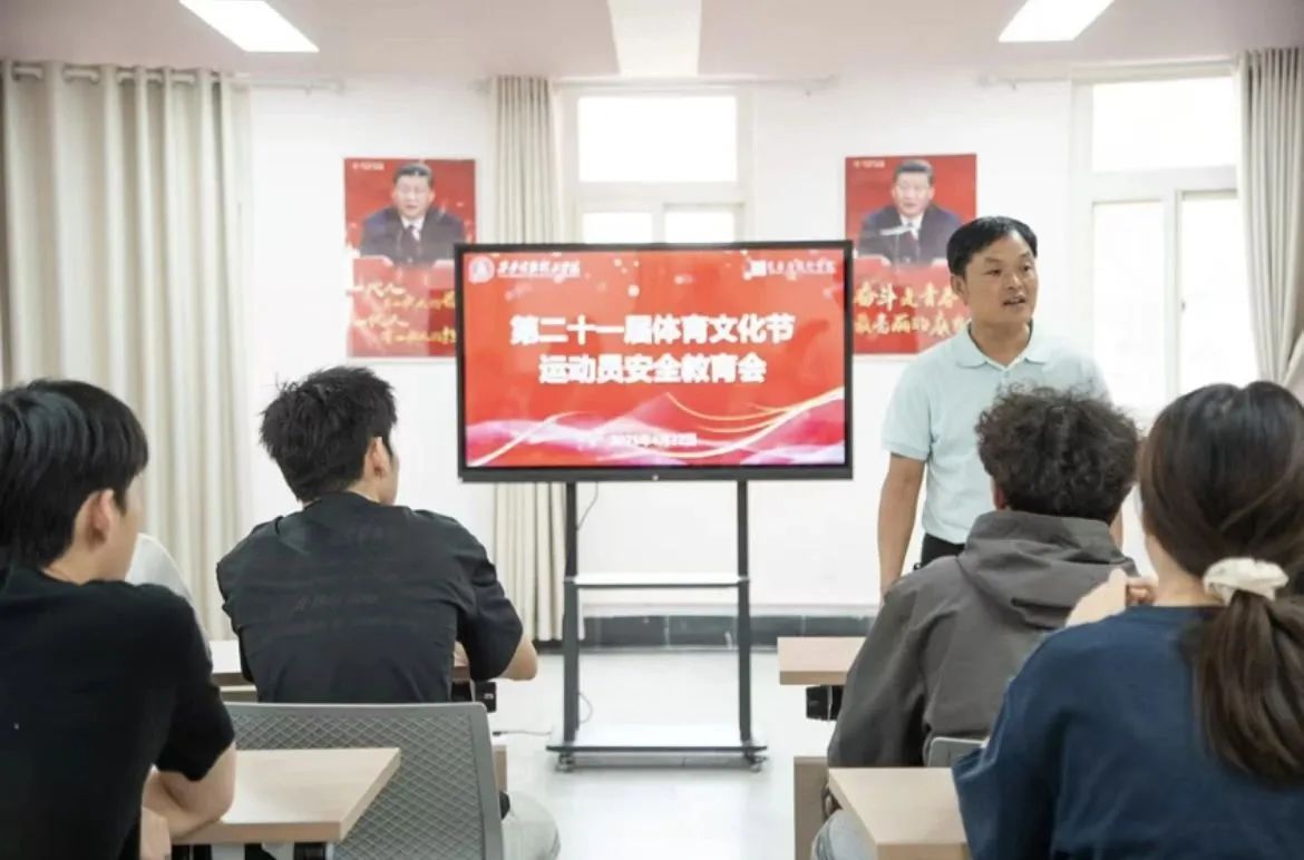 2025年4月22日,艺术与设计学院在梅苑一站式组织召开体育文化节运动会专题安全教育工作会议。