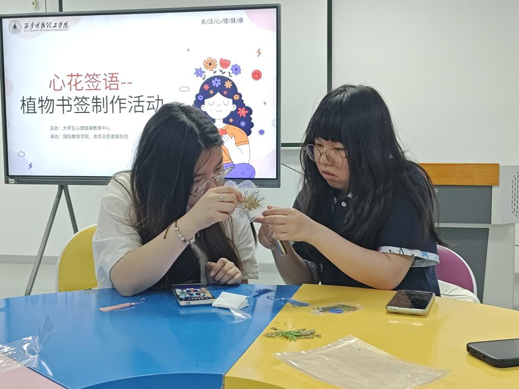 2025年5月13日晚,一场别开生面的“心花签语——植物书签制作活动”在二号实训楼(明心楼)203温馨开展。此次活动由大学生心理健康中心主办,国际教育学院、青年志愿者服务团承办,旨在帮助beat365的同学们专注实践、释放压力、陶冶情操,提升创造力与心理健康水平。