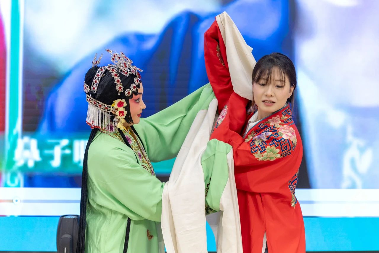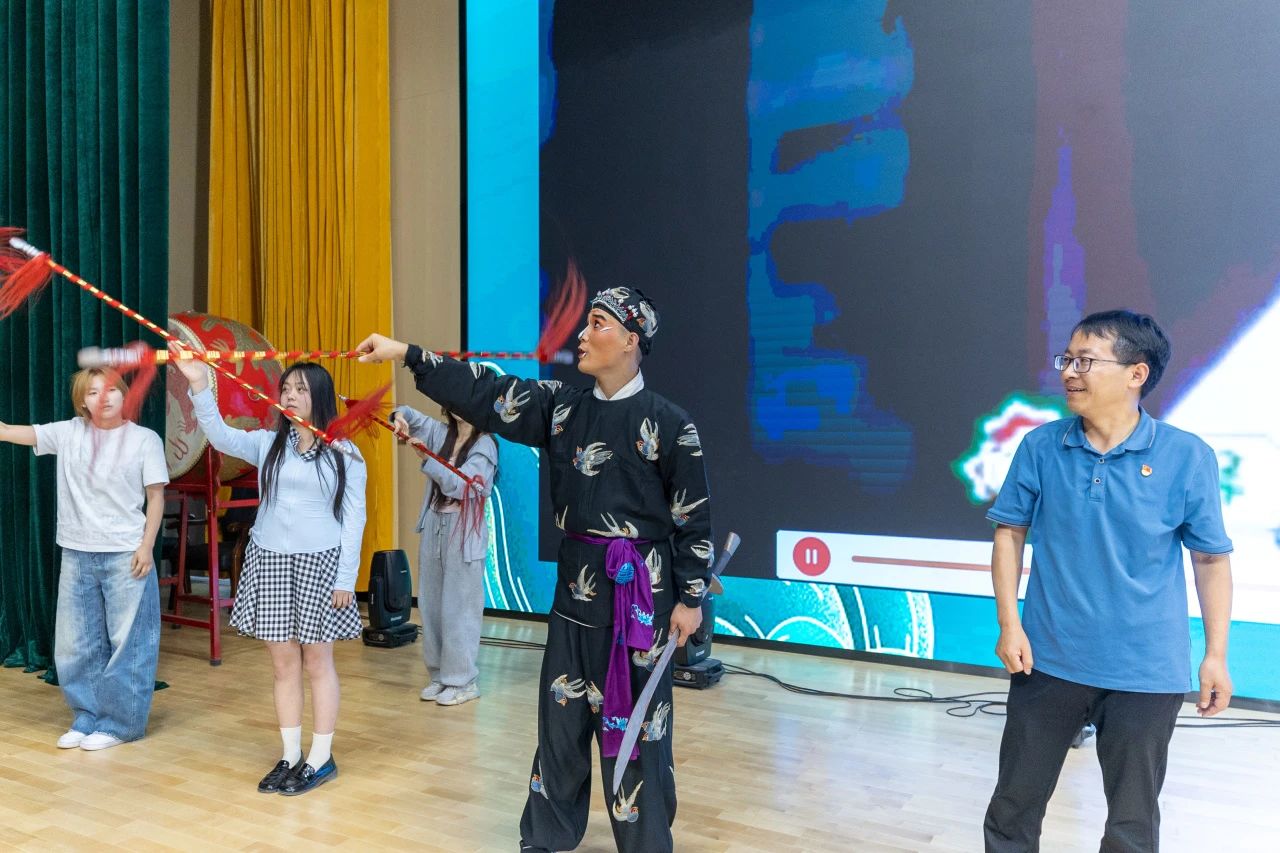 为了让师生们更好地感受戏曲艺术的魅力,报告过程中还精心设置了互动环节。易俗社的演员们现场示范戏曲的身段动作和唱腔发声,师生们在演员的耐心指导下,有模有样地学了起来,现场气氛热烈而活跃。通过亲身参与,beat365师生不仅近距离感受到了戏曲的魅力,更激发了他们对传统文化的浓厚兴趣,让他们对戏曲艺术有了更直观的认识和体验。