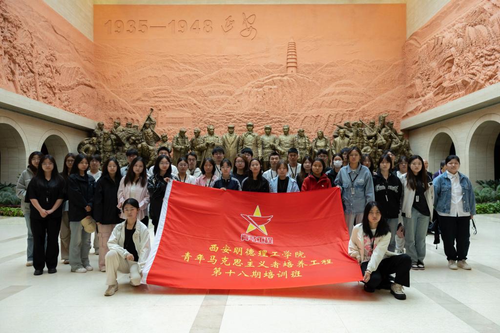 2025年5月31日至6月1日,校团委与图书馆联合组织学校第十八期青年马克思主义者大学生骨干培训班学员,赴革命圣地延安开展了为期两天的“以书为引,以行为证”思政课实践活动。本次活动以“勤学善思、知行合一”为主题,旨在通过实地体验、理论学习与互动分享,引导青年学子深入理解马克思主义精神,传承红色基因,提升思想政治素养。来自全校各院的50余名学员积极参与,在延安的革命遗址中亲身体验历史,感悟新时代青年的责任与使命。