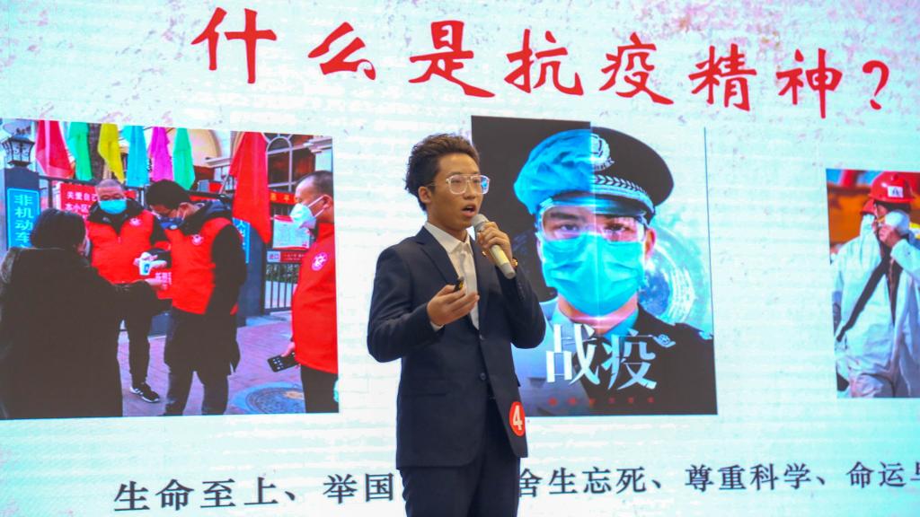 为弘扬抗疫精神,讴歌时代英雄,以榜样的力量激发同学们的爱国主义热情,12月10日,学院学生会在建德楼203举办了以“弘扬抗疫精神,践行青春使命”为主题的新生演讲比赛。通识教育学院韩祜生、语言文化传播学院鄢盼盼、学院团委干部、各二级学院团工委书记与400余名学生共同观看了比赛。