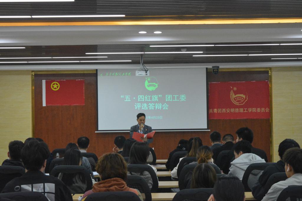 4月23日,学校团委在明志楼311报告厅举办了2020—2021年度“五四红旗团工委”评选答辩会。党委(学生)工作部部长高超、管理服务科科长王飞、各二级学院党总支书记及团学干部代表参加会议。会议由团委乔建主持。