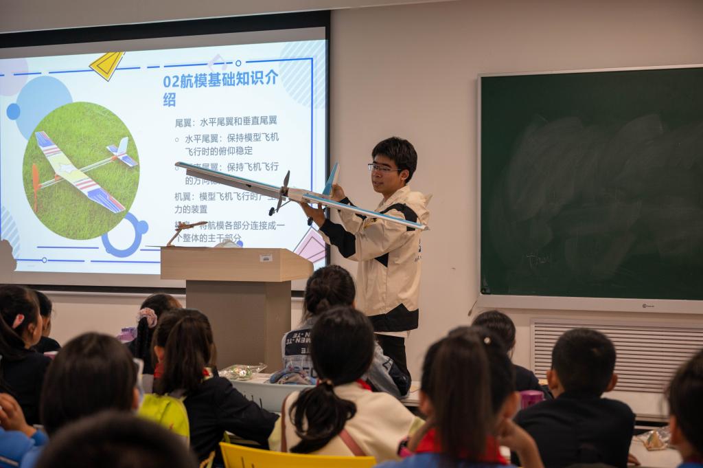 进入校园后,志愿者先带领小葵花们参观了美丽校园;在一号实训楼401教室,开展了端午节历史文化交流分享活动。志愿者为小葵花们讲述了端午节的由来和习俗,为大家分享了制作香囊的方法,锻炼了“小葵花们”动手能力,使他们在情景教学中更加了解端午节的传统习俗,懂得了中华传统文化的博大精深。随后,学校航模队的志愿者们为“小葵花”们分享了精彩的航空科普知识,志愿者从航模的发展历程、结构构造、个体特点等方面进行了讲解,并带领“小葵花”们自己动手,制作了专属飞机小模型,激发了他们的航天梦。