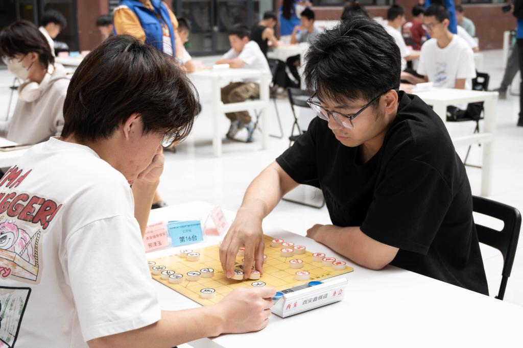 开幕式结束后,赛事在明志楼中厅正式启动。来自全省30余所高校的100余名选手在明志楼中厅展开激烈角逐。赛场内,选手们凝神静气,于方寸棋盘间运筹帷幄,攻守博弈尽显智慧锋芒,充分展现象棋智慧与竞技精神。本次比赛秉持“以棋会友、传承文化”的宗旨,为青年学子提供了交流技艺、弘扬传统的优质平台。