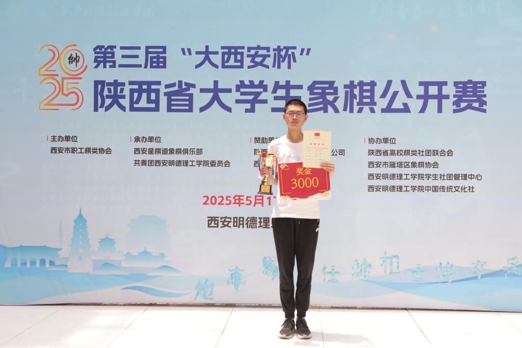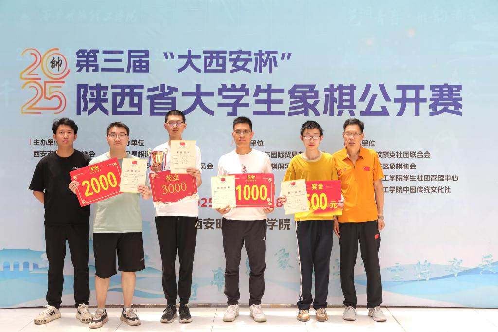 5月18日,赛事圆满落幕并举行颁奖仪式。经过多轮鏖战,西安交通大学肖佳奇斩获个人赛冠军,西北工业大学刘郑宇斩获亚军,榆林学院白晓东斩获季军。在团体赛中,实力强劲的西安交通大学代表队凭借精湛的棋艺和出色的团队实力力压群雄,夺得团体第一名。