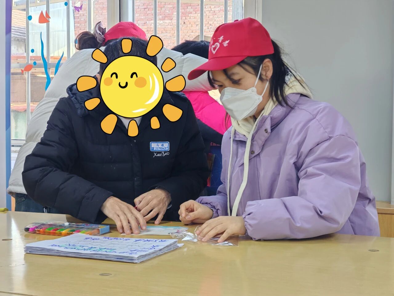 活动一开始,志愿者们便与孩子一对一相伴:耐心讲解“图形对应”的小技巧,再手把手引导孩子贴贴纸,即便孩子们动作稍缓、反复尝试,志愿者也始终轻声鼓励,直到一张张贴纸精准对应,孩子们脸上的成就感成为活动最初的温暖印记。