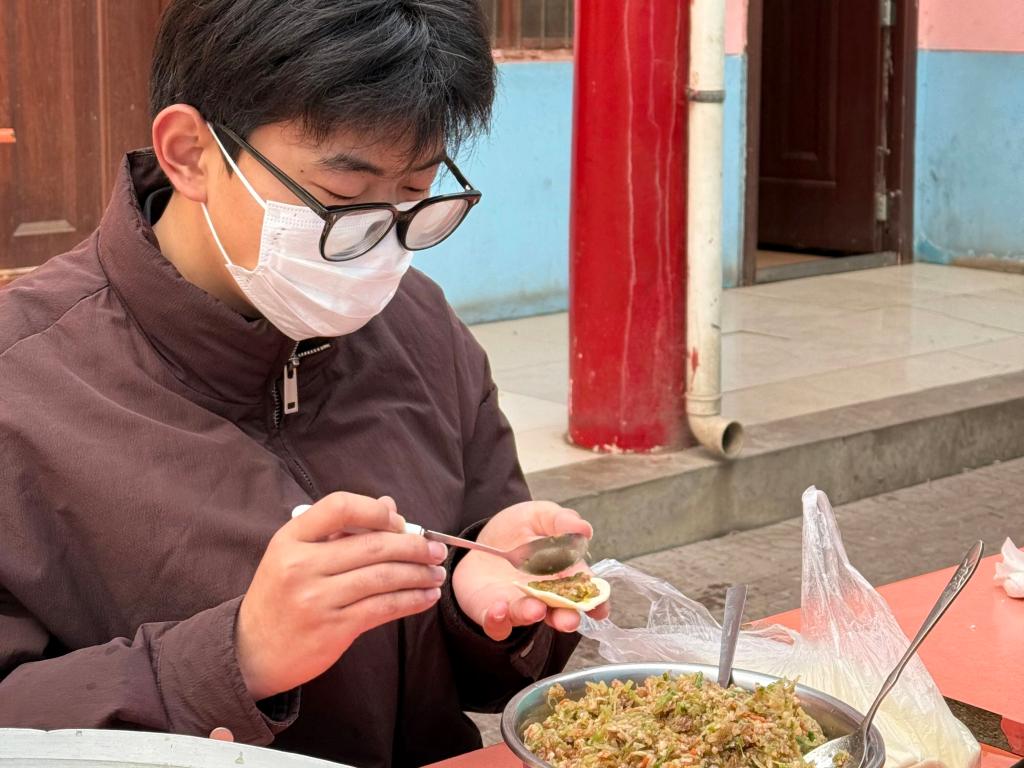 饺子鲜香萦绕之际,志愿者们在操场带着孩子们学起了简单的手指舞。跟着轻快的节奏,小手时而合拢时而舒展,志愿者耐心纠正每一个动作,鼓励孩子们大胆跟随节拍律动,操场里满是清脆的笑声与整齐的拍手声,志愿者和孩子们奔跑、游戏,阳光下的追逐打闹、肆意欢笑,成为冬至里最鲜活的风景。